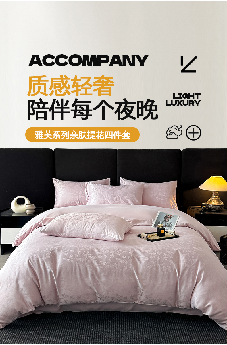当前位置: 91家纺网 > 商品网购 > 床品套件 > 四件套 > 提花四件套 > 置顶家纺 2025新款亲肤提花系列四件套-雅芙 雅芙-粉紫
