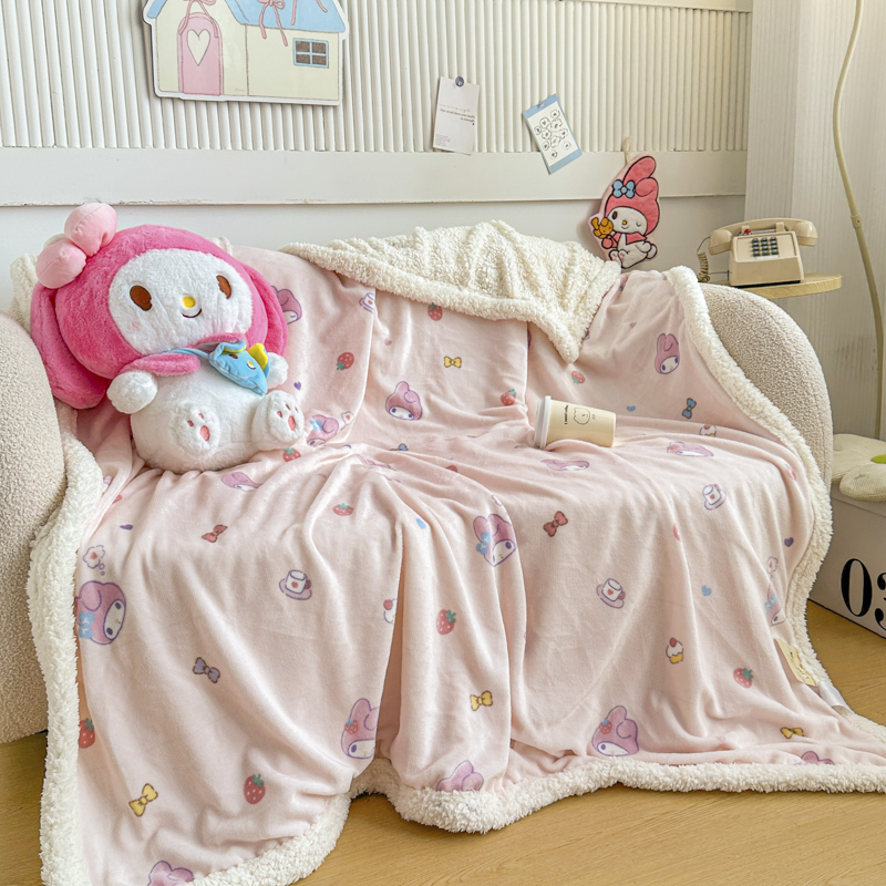 花满路 2025新款亲肤舒适三丽鸥羊羔毛毯 派对库洛米