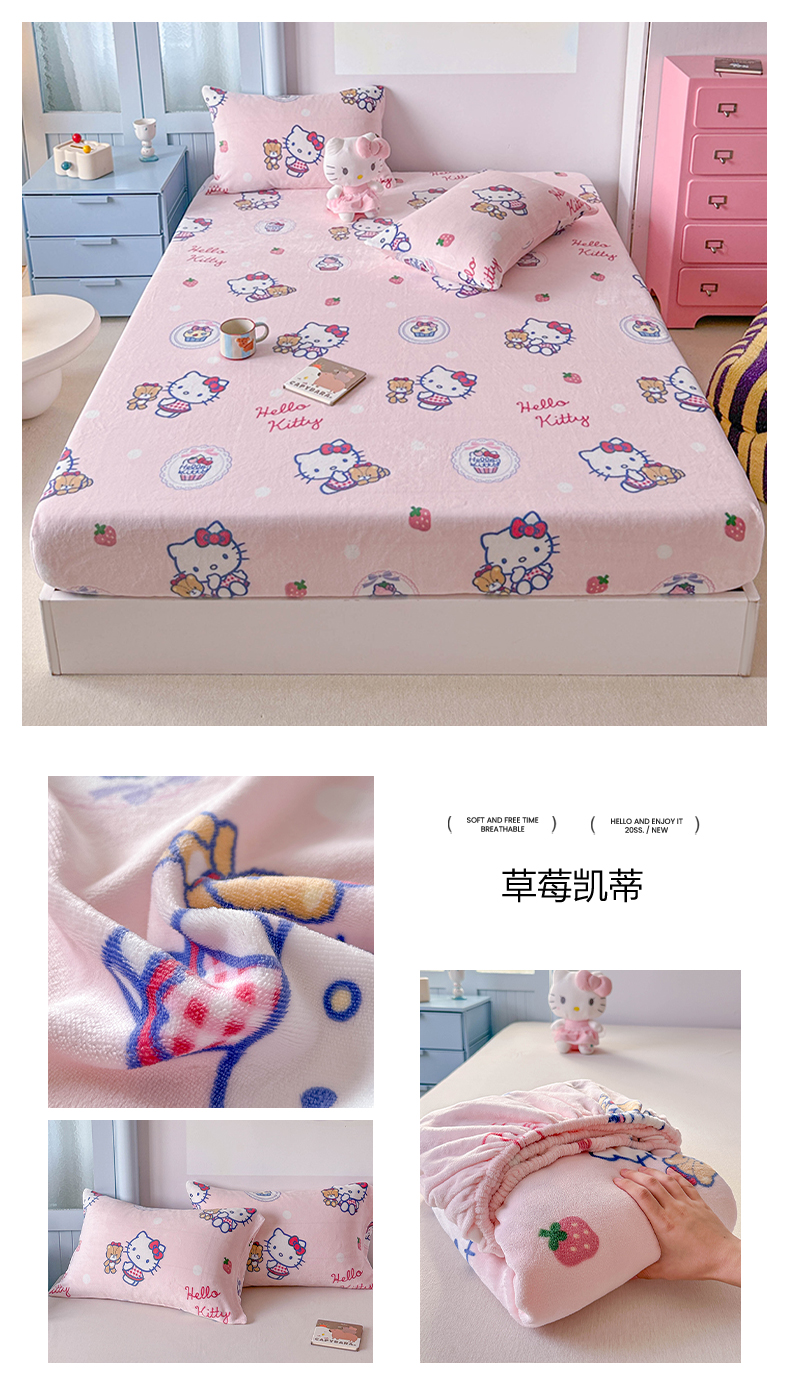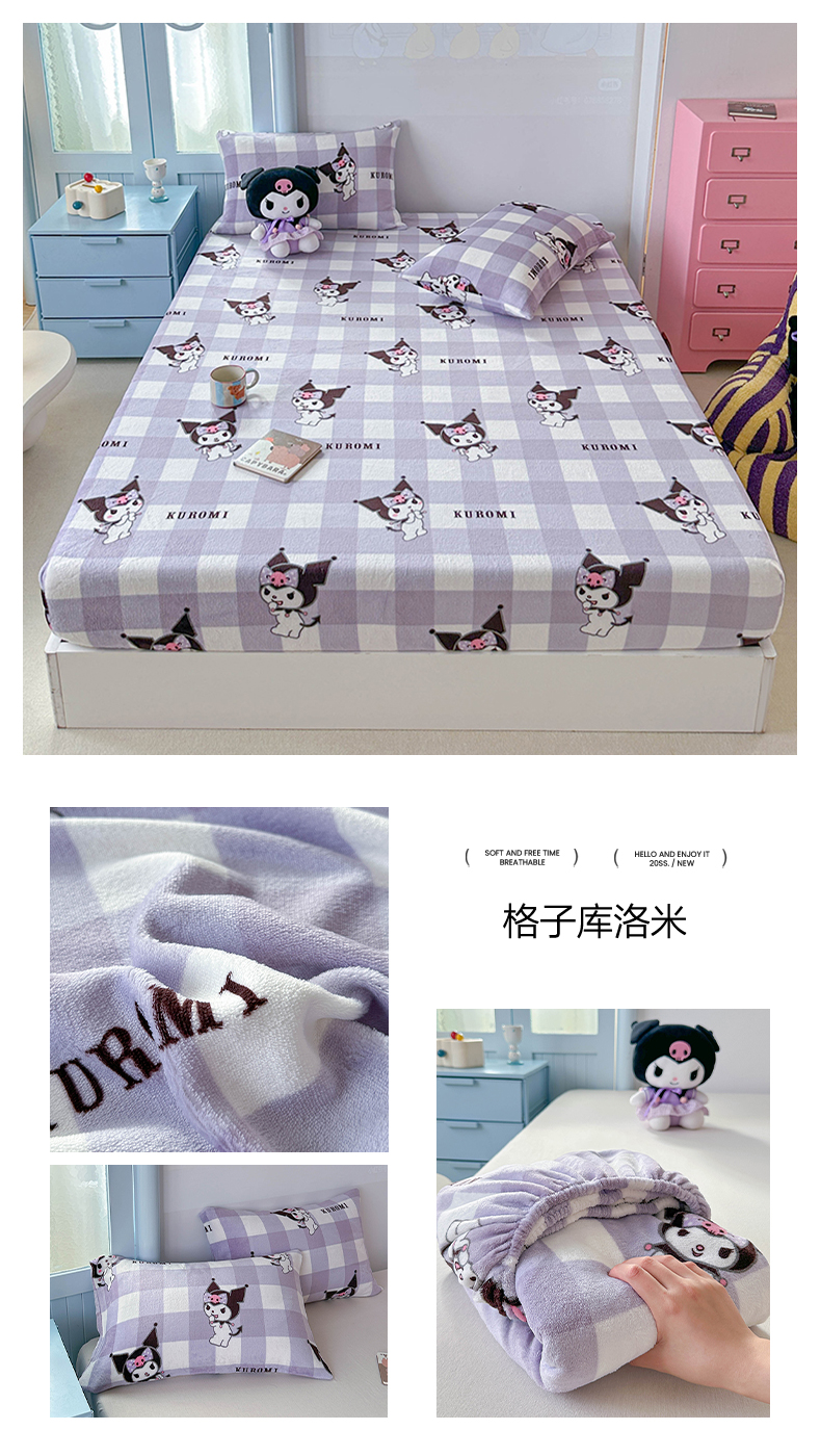 商品名称:爱丽丝 2025新款正版授权三丽鸥牛奶绒单品床笠枕套 点点玉桂狗