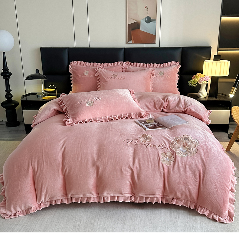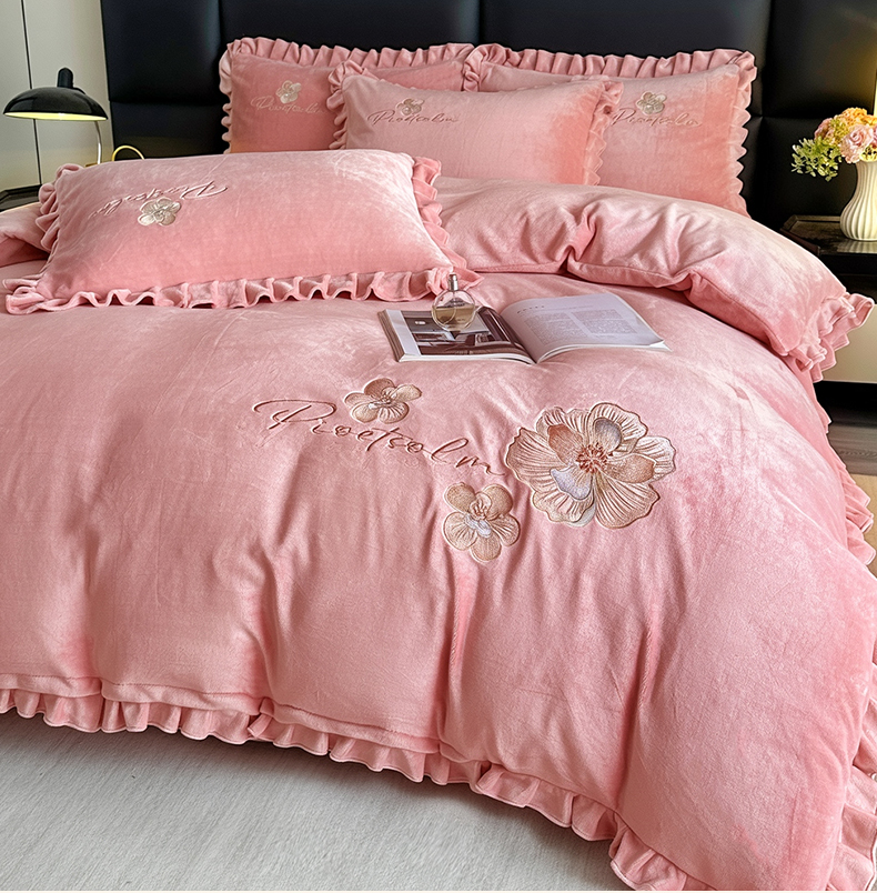 董韵家纺 2025新款高克重 250克9-10斤牛奶绒 刺绣床单四件套系列 柔眠-浅豆沙