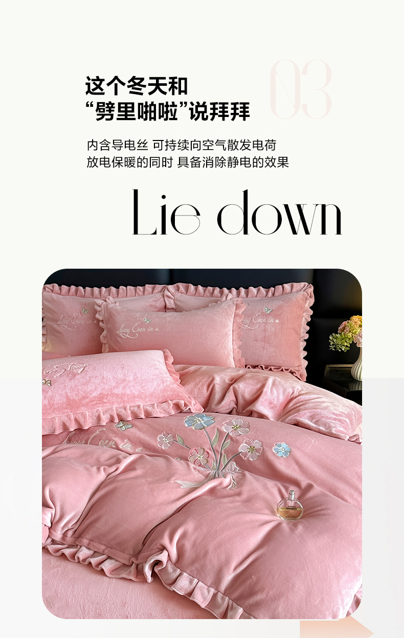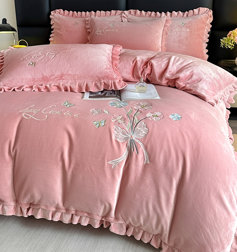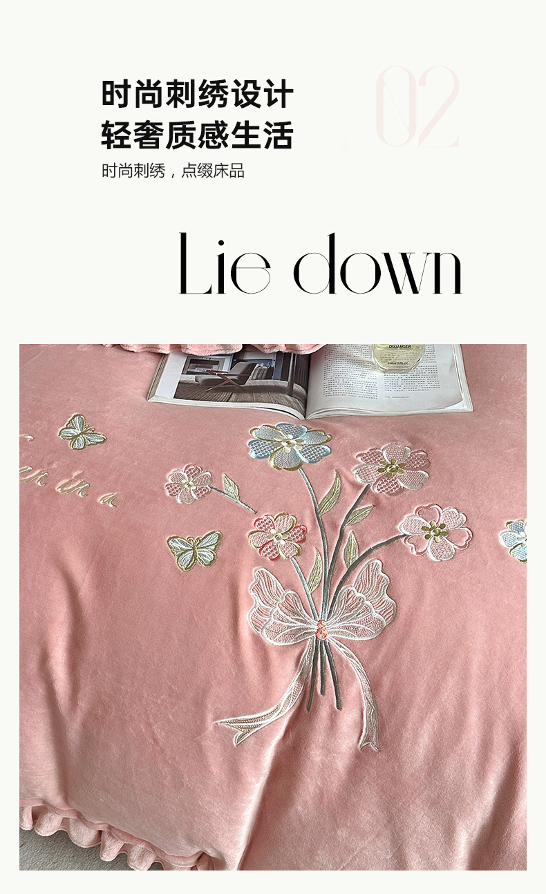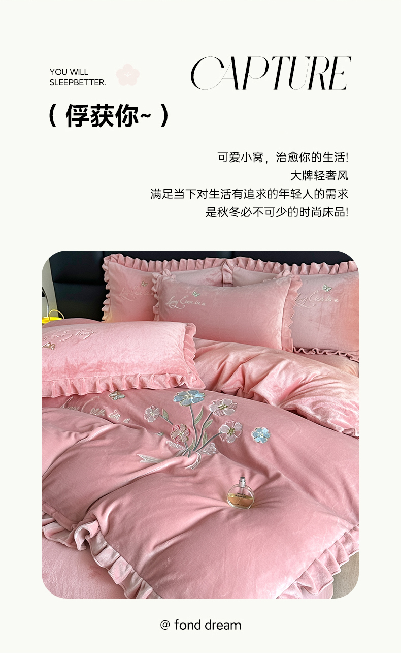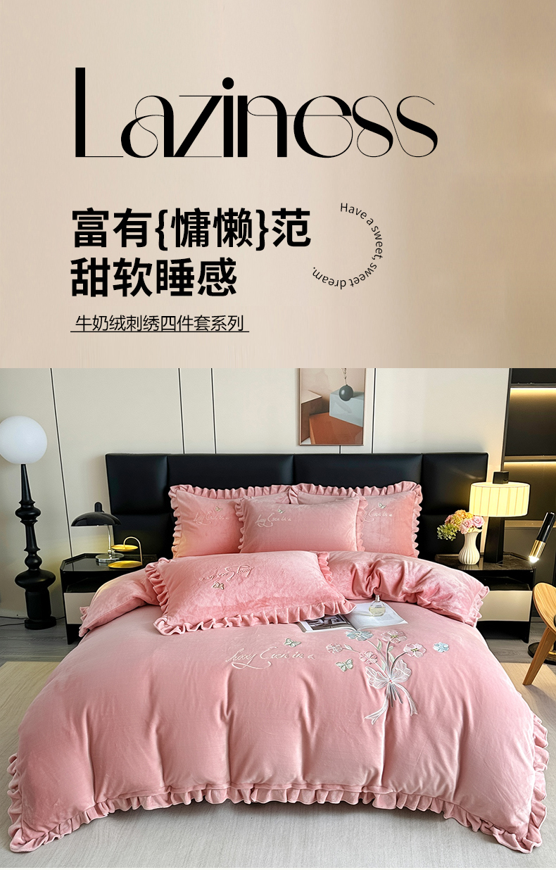董韵家纺 2025新款高克重 250克9-10斤牛奶绒 刺绣床单四件套系列 柔雾-浅豆沙