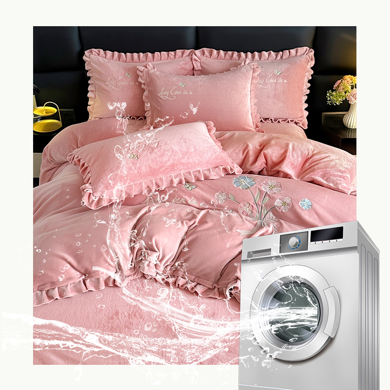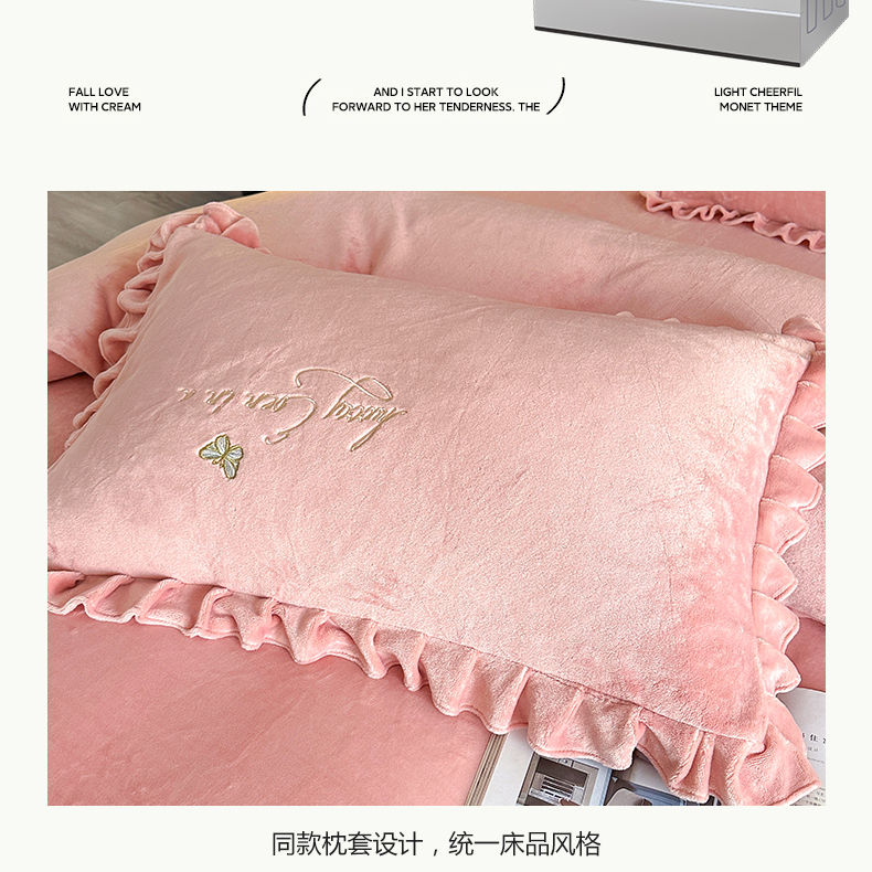 商品名称:董韵家纺 2025新款高克重 250克9-10斤牛奶绒 刺绣床单四件套系列 柔雾-浅豆沙