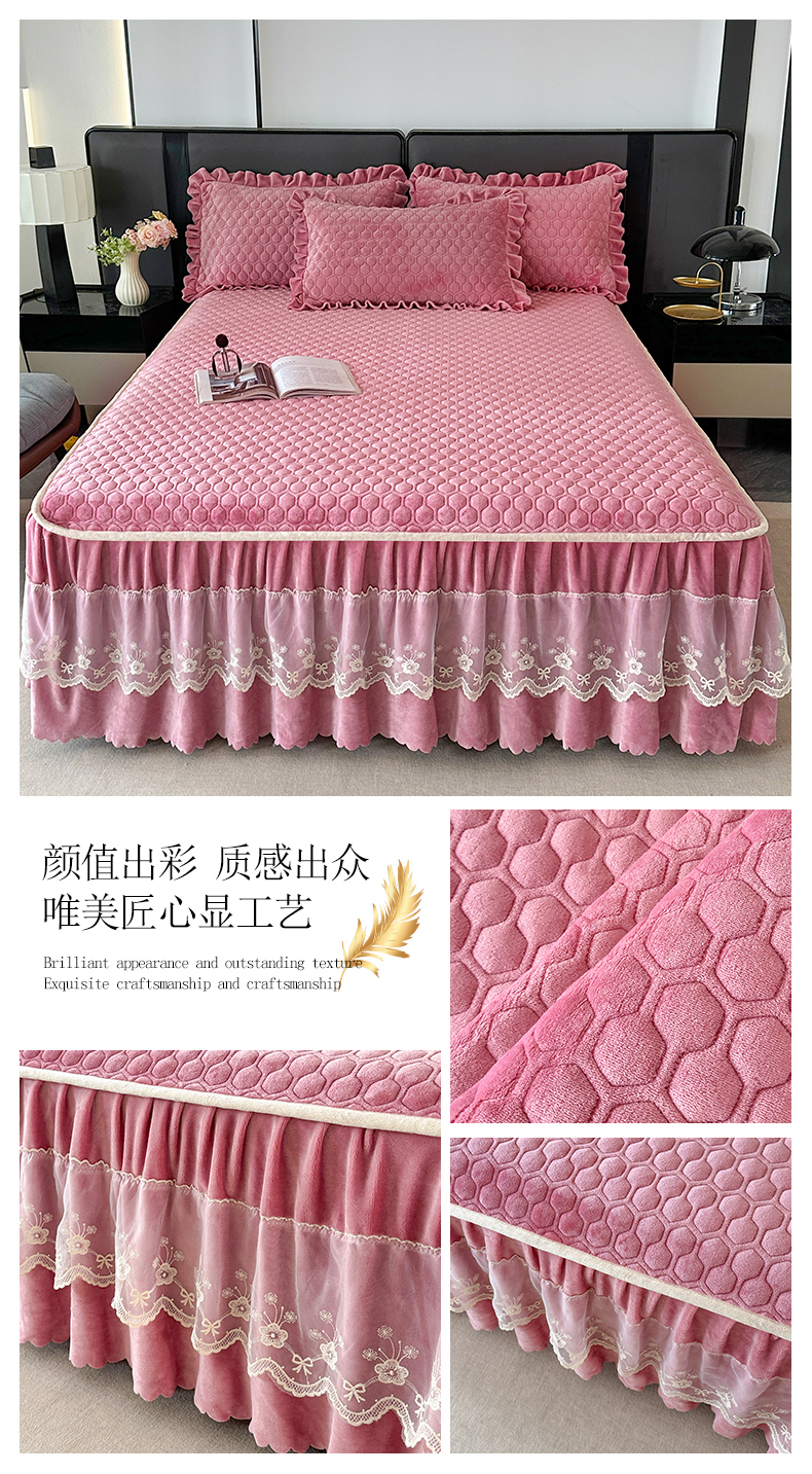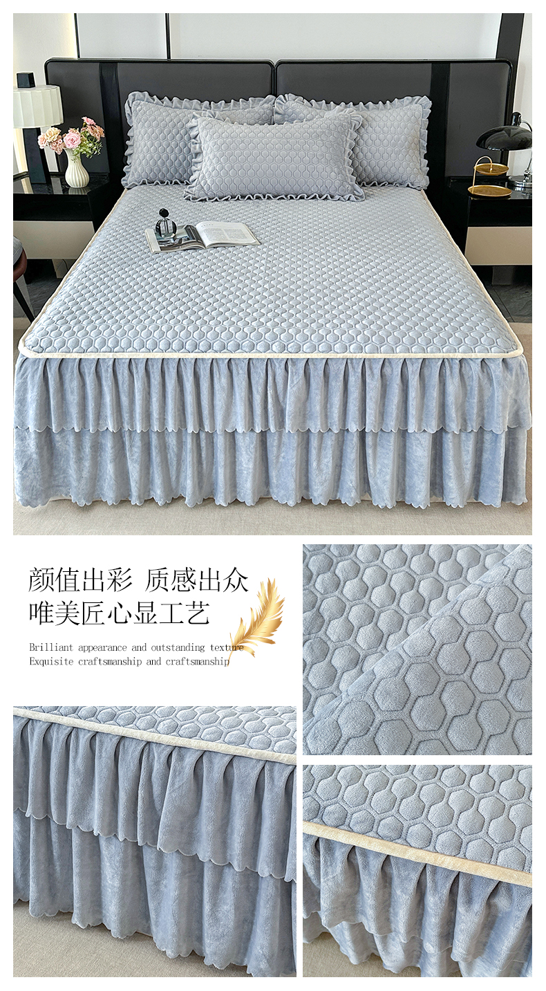 • 91家纺网 家纺一手货源 找家纺 董韵家纺 2025新款牛奶绒刺绣夹棉床裙三件套系列(控价) 绒语-云烟灰
