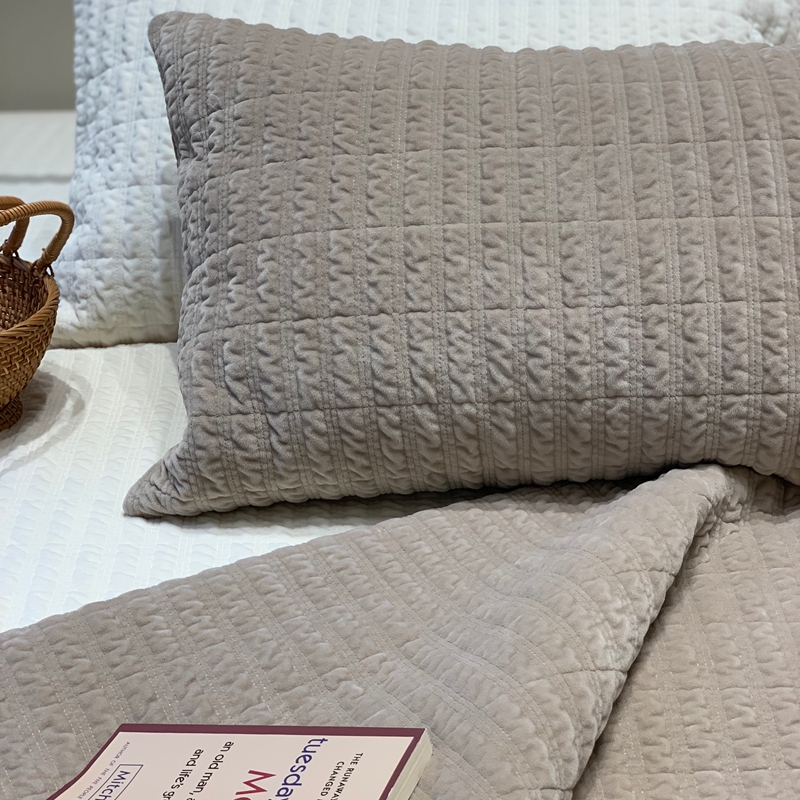 商品名称:汇庭 2025新款时尚条绒床盖三件套系列 时尚条粉