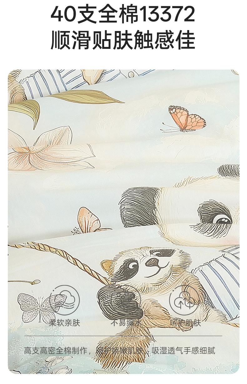 当前位置: 91家纺网 > 商品网购 > 婴童用品 > 婴童睡袋/防踢被 > 麦吻儿童家居 2025新款全棉40支大版花型儿童被午休睡袋 熊猫荡秋千