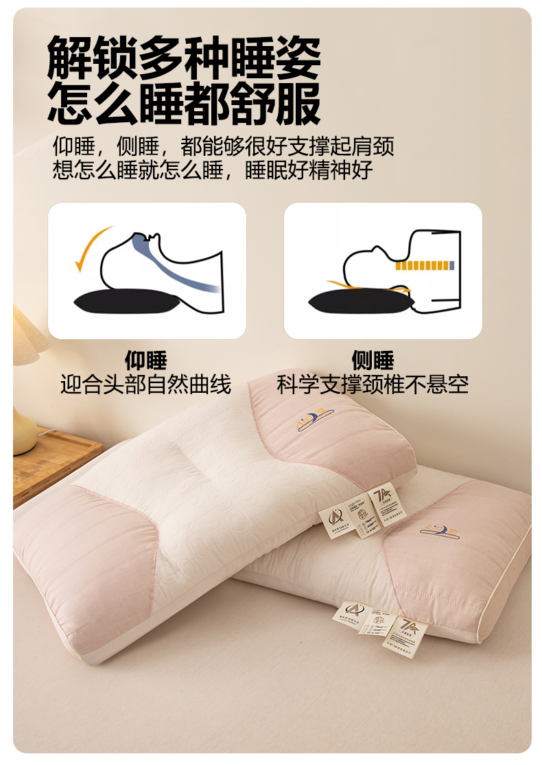 贵夫人 2025新款分区蚕丝护颈枕-抑菌升级 枕头枕芯 杏高1对