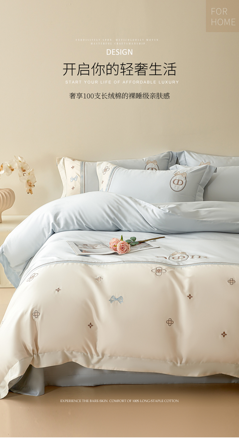 (总)洺兰家居 2026年新疆长绒棉100支秋冬款轻磨毛加厚保暖工艺款四件套床上用品,路易斯-米,千屿-曼卡粉,一见倾心-米,羽纱-卡其,织梦-粉,栀子花开-绿
