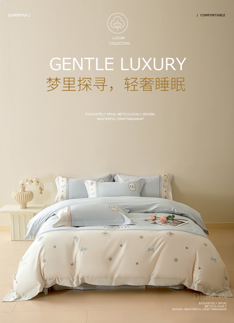 洺兰家居 2025年新款新疆长绒棉100支刺绣款绣花四件套 戴琳 戴琳-蓝
