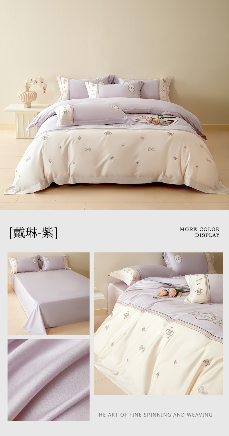 (总)洺兰家居 2025年新款新疆长绒棉100支刺绣款绣花四件套 戴琳,戴琳-粉,戴琳-蓝,戴琳-紫