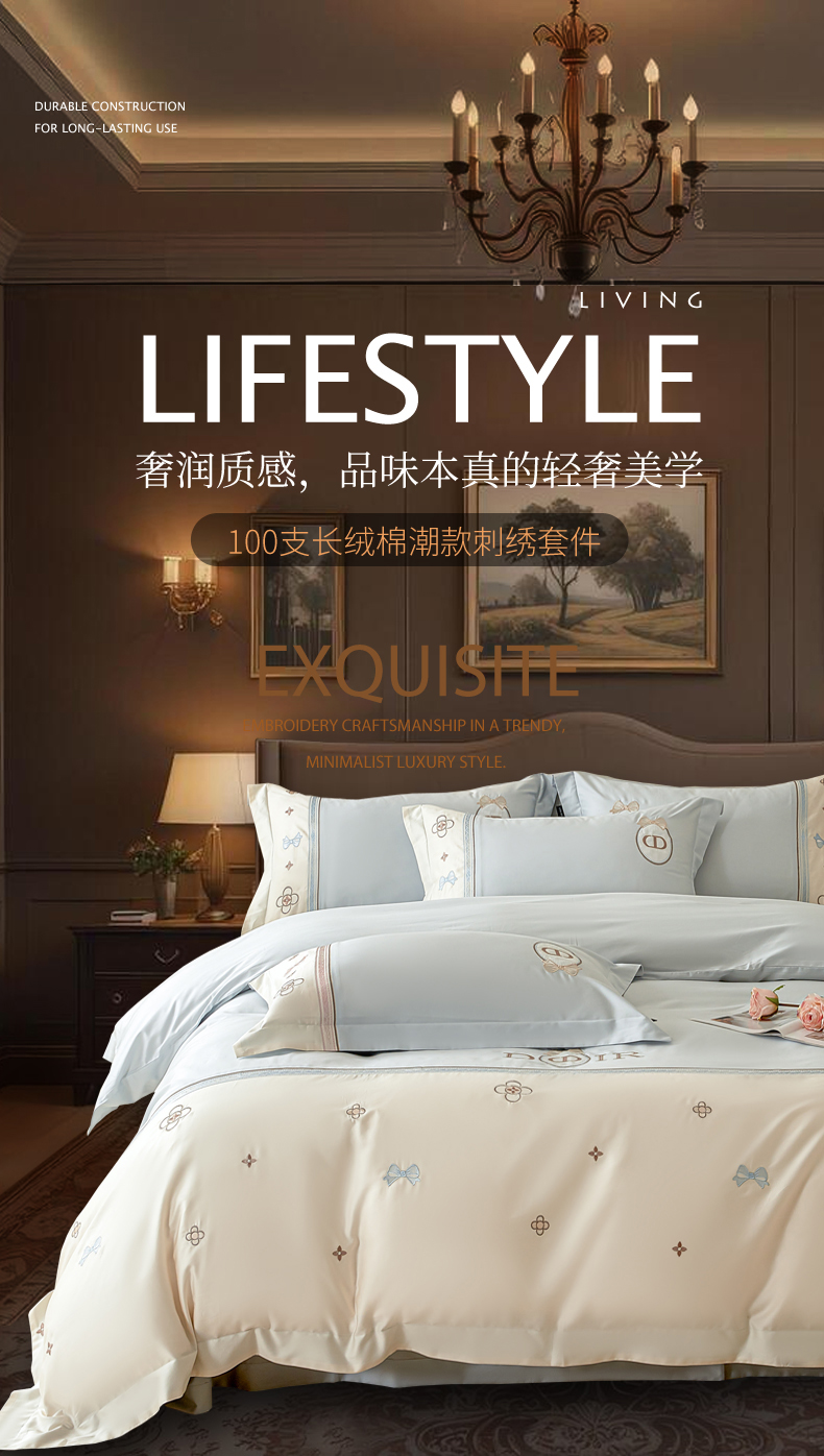 (总)洺兰家居 2026年新疆长绒棉100支刺绣款绣花工艺款法式四件套 云岚,云岚-粉,云岚-米,云岚-紫