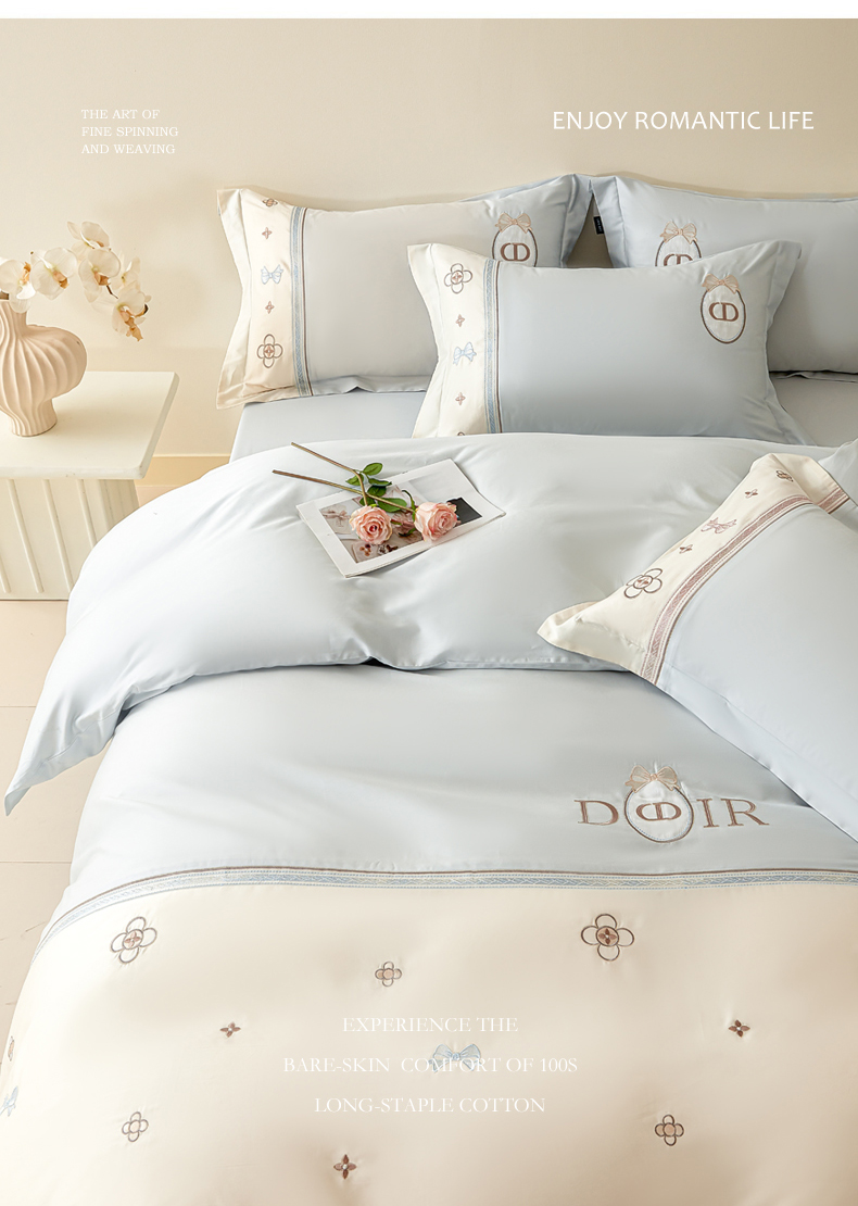 商品名称:洺兰家居 2025年新款新疆长绒棉100支刺绣款绣花四件套 戴琳 戴琳-蓝