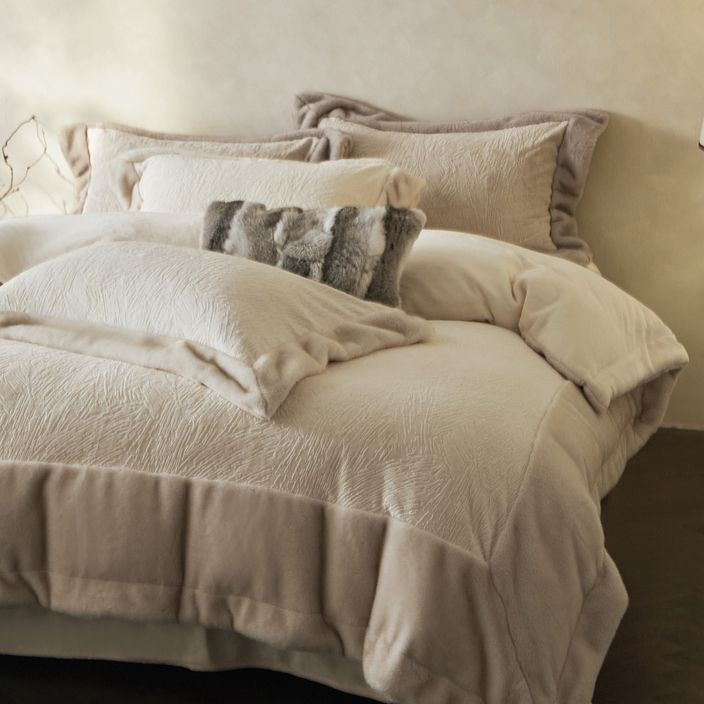 (总)佳汐蓝家纺 2025新款雕花牛奶绒水貂毛拼边四件套-丹尔曼(卷后不低于398起)