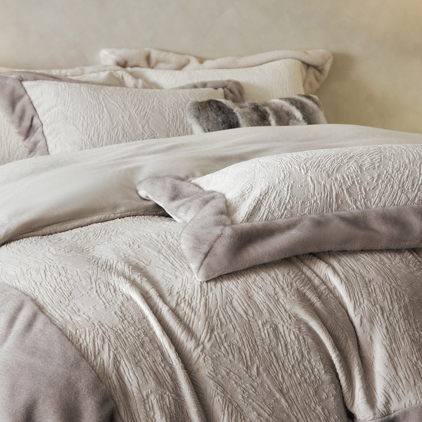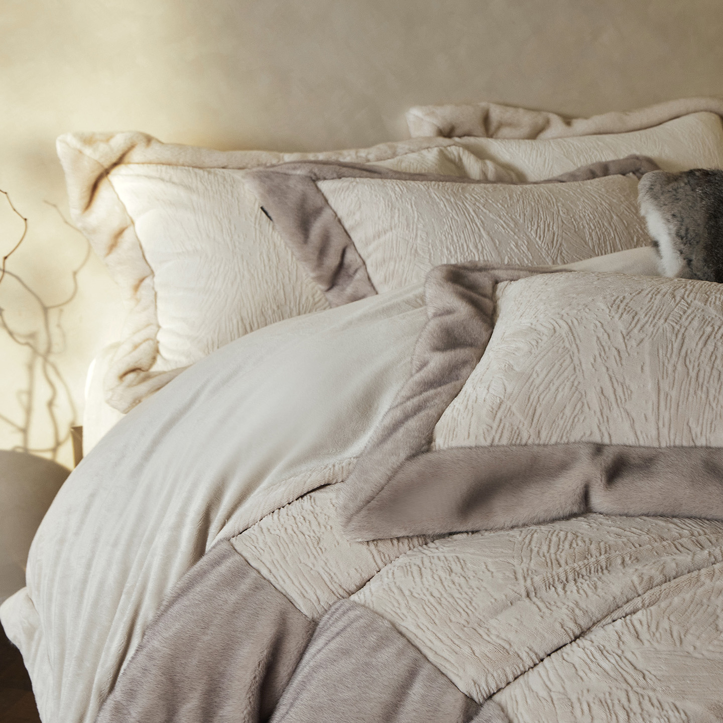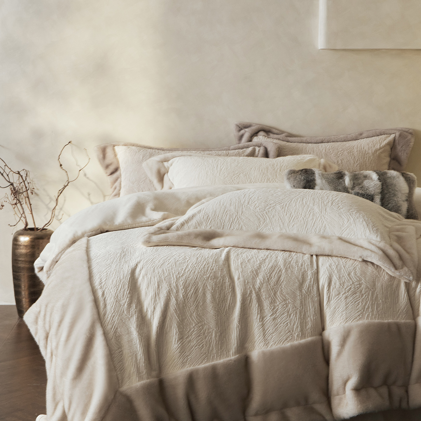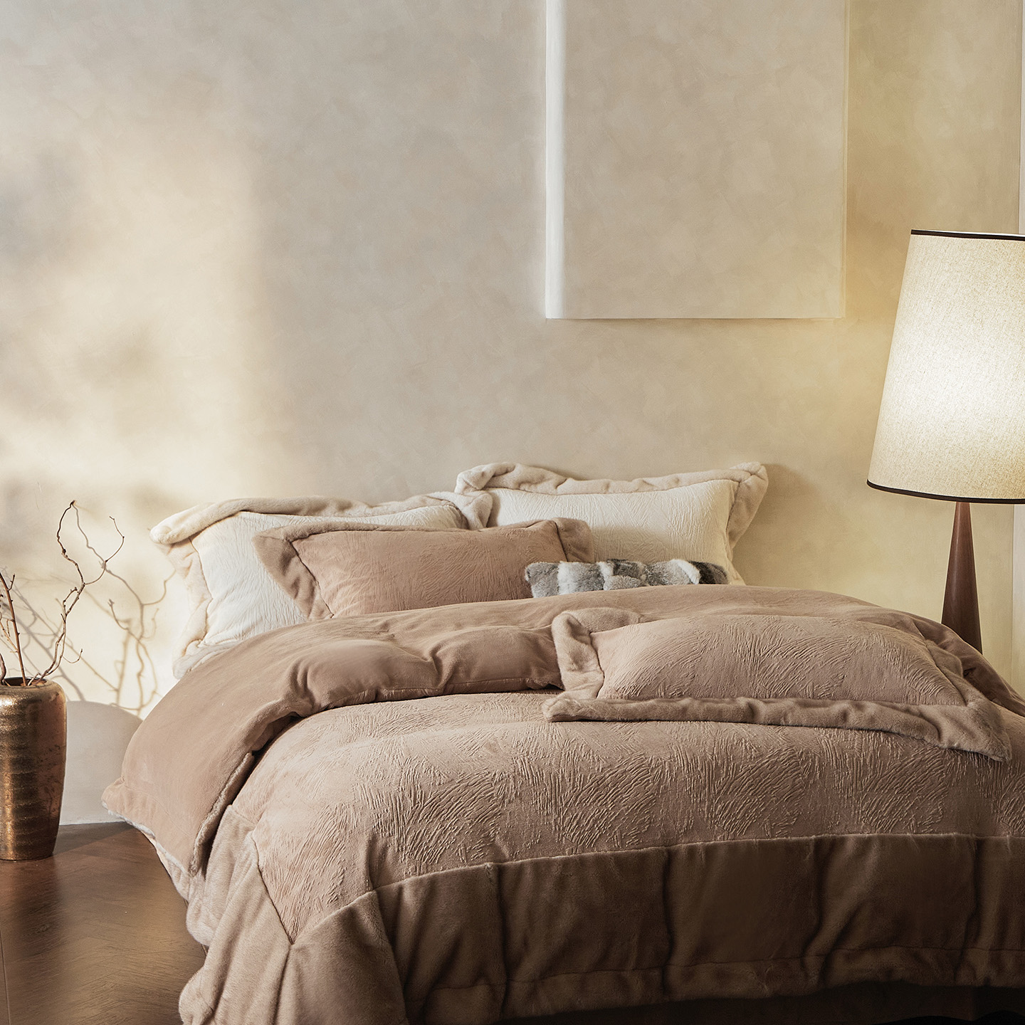 商品名称:(总)佳汐蓝家纺 2025新款雕花牛奶绒水貂毛拼边四件套-丹尔曼(卷后不低于398起)
