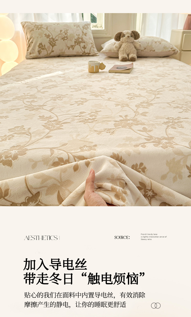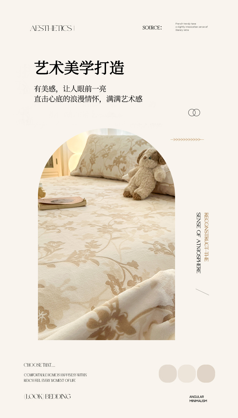 • 91家纺网 家纺一手货源 找家纺 灰鲸 2025新款立体雕花牛奶绒床单单床单单品床单单件 繁花-杏