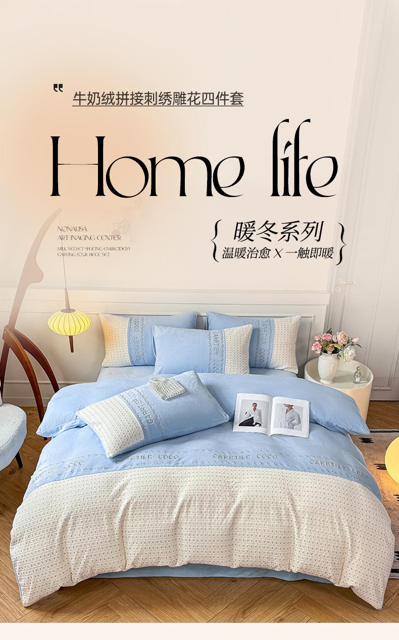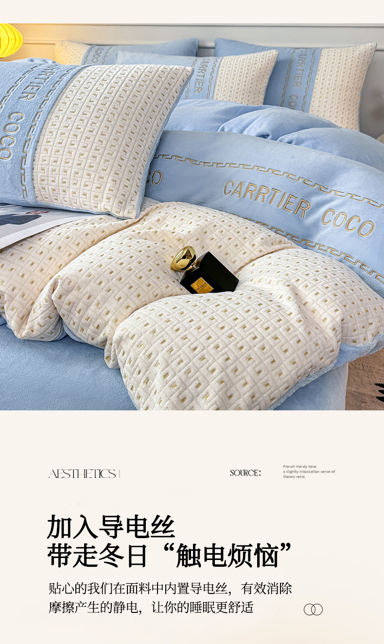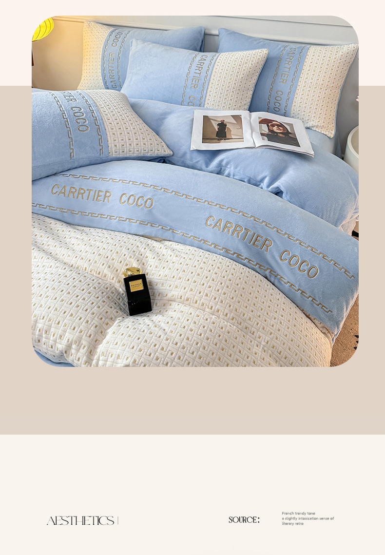 当前位置: 91家纺网 > 商品网购 > 床品套件 > 四件套 > 牛奶绒四件套 > 灰鲸 2025新款牛奶绒刺绣拼接款四件套-威廉 威廉-繁星蓝