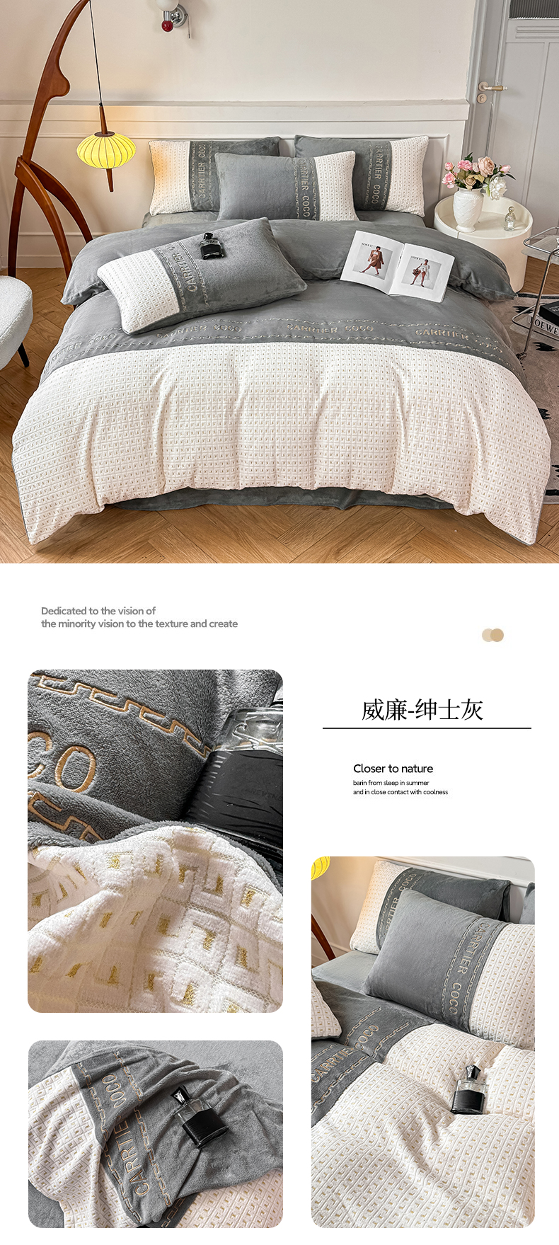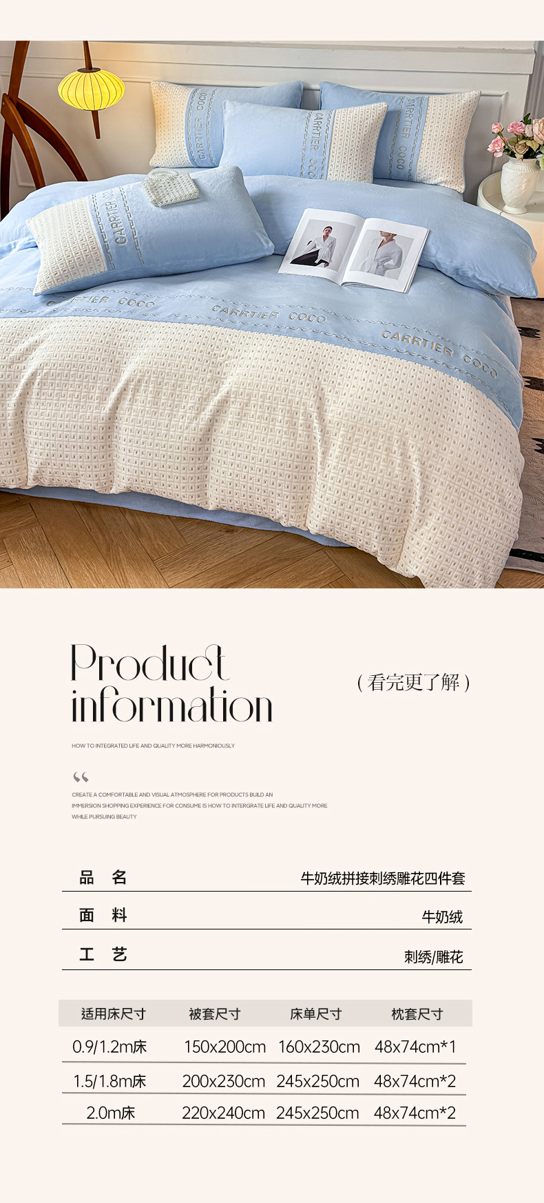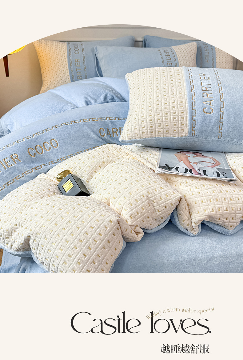 当前位置: 91家纺网 > 商品网购 > 床品套件 > 四件套 > 牛奶绒四件套 > 灰鲸 2025新款牛奶绒刺绣拼接款四件套-威廉 威廉-繁星蓝