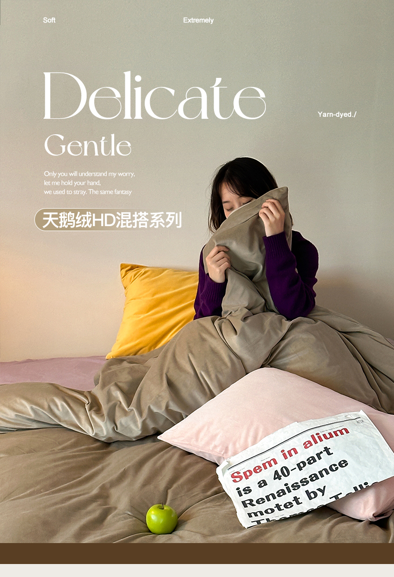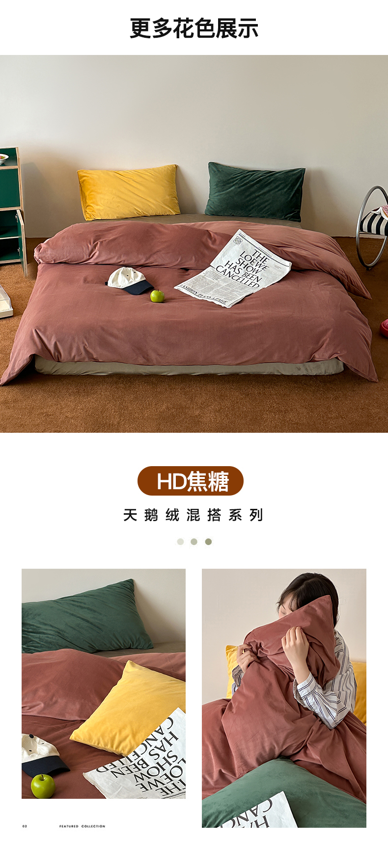 当前位置: 91家纺网 > 商品网购 > 床品套件 > 四件套 > 其它四件套 > 例外 2025新款日式良品190克高克重天鹅绒HD混搭系列四件套 HD深灰