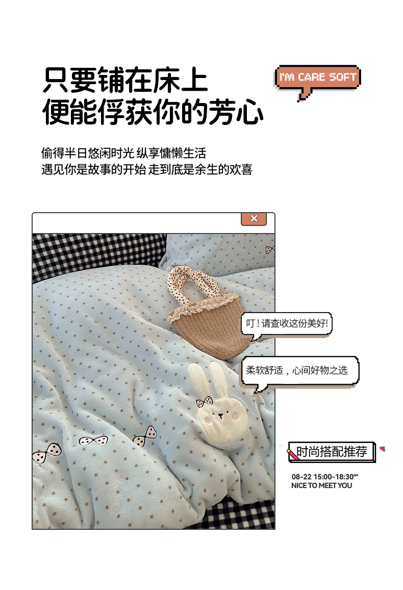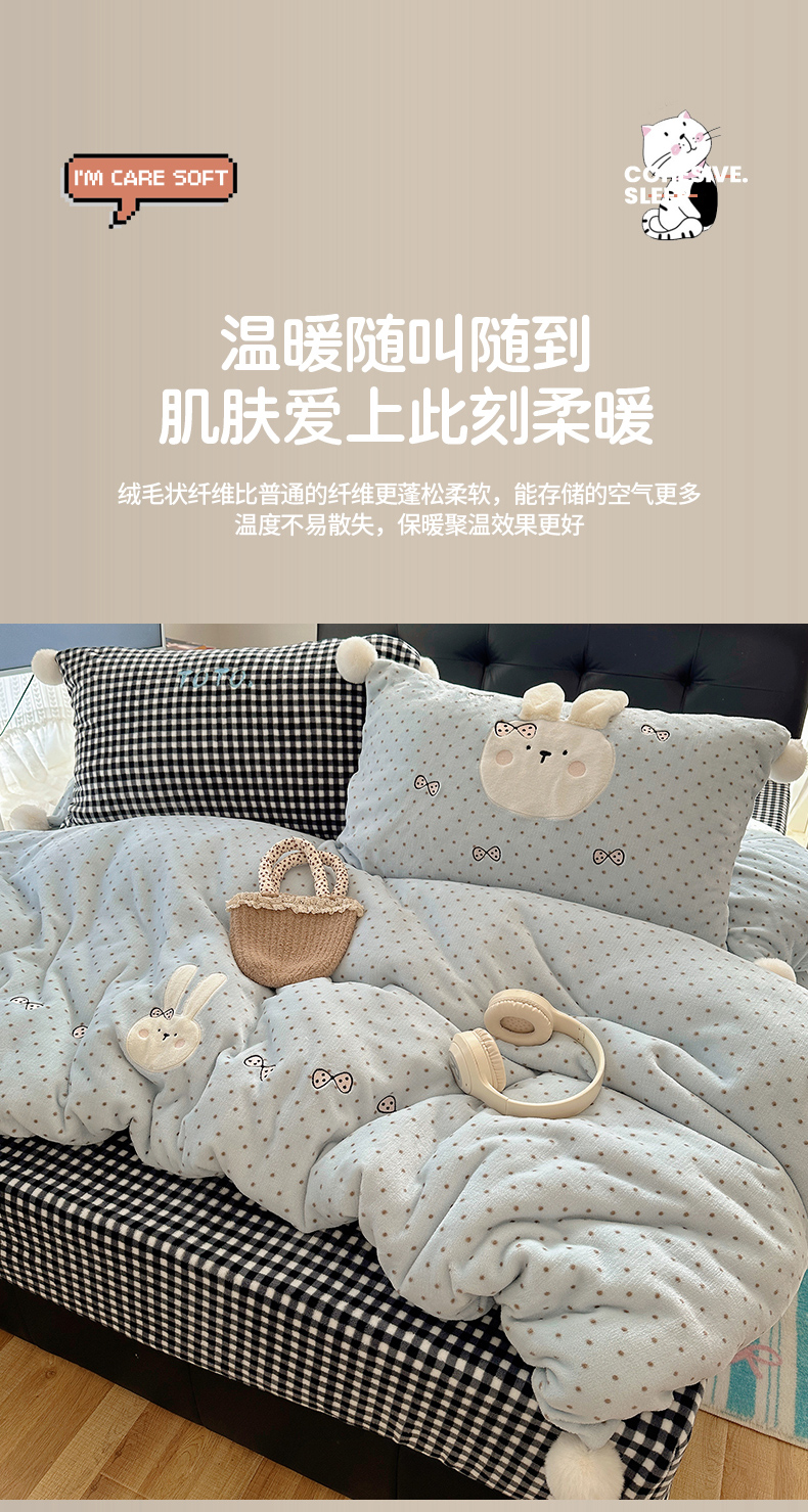 当前位置: 91家纺网 > 商品网购 > 床品套件 > 四件套 > 牛奶绒四件套 > 轻奢坊 2025新款牛奶绒毛球款卡通贴布绣四件套-可爱兔 猫咪and狗狗