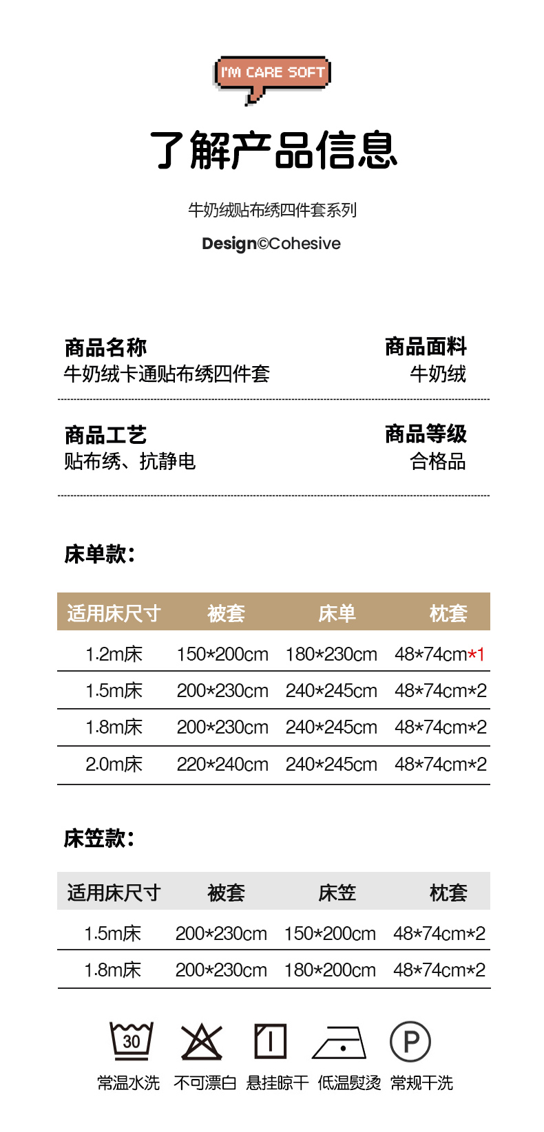 【床笠款】1.5四件套-被套200x230 | ¥130.00 |