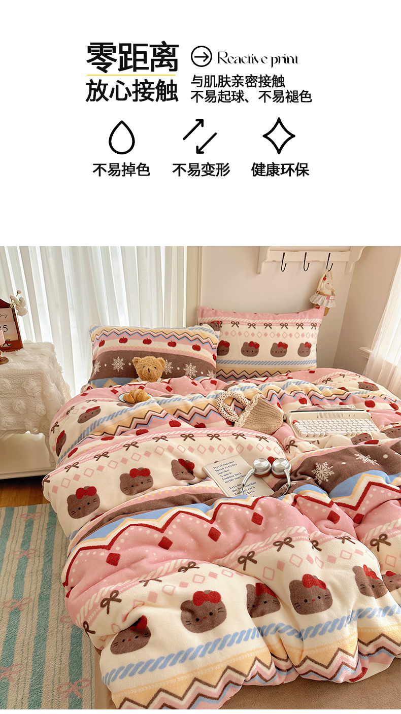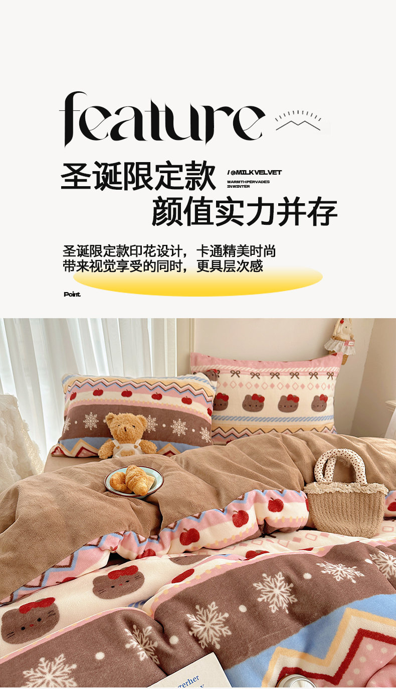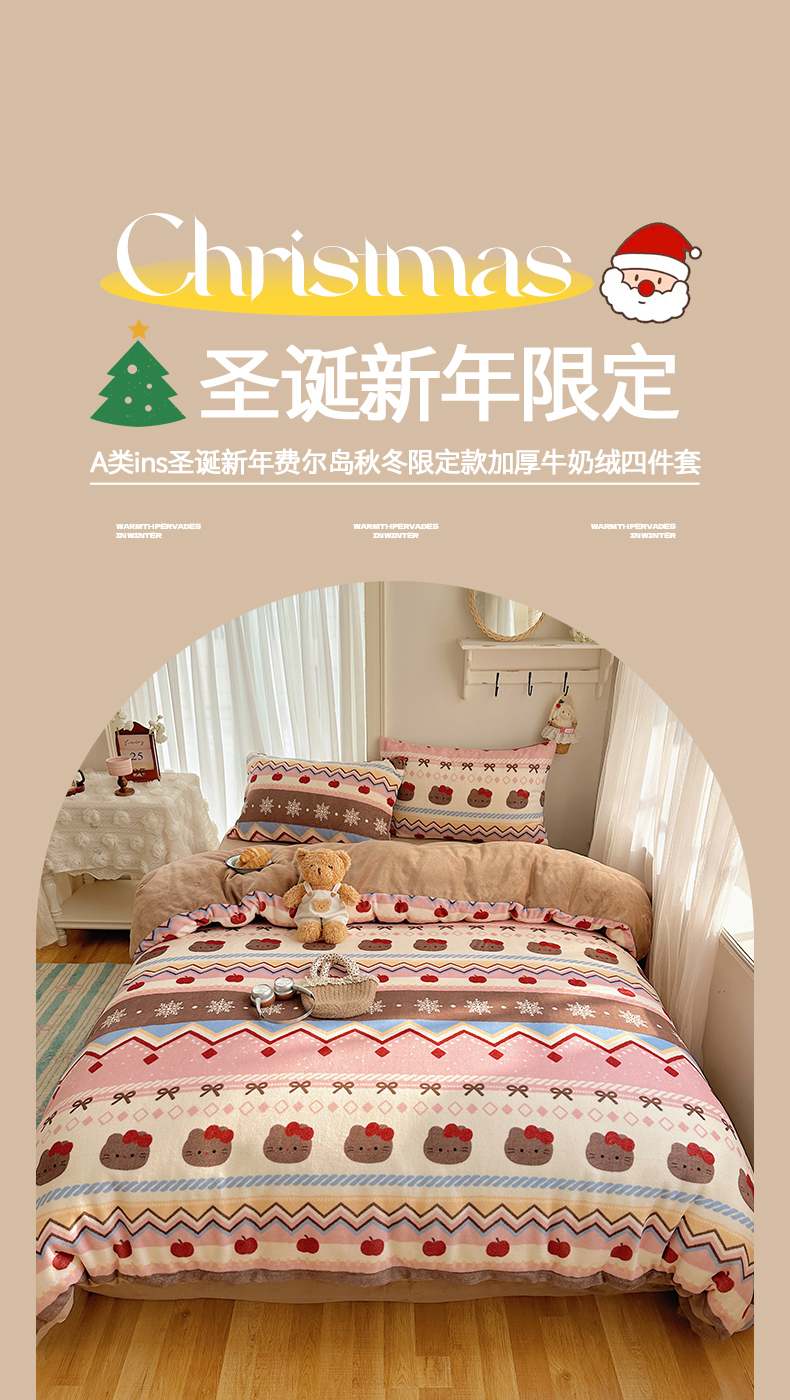 当前位置: 91家纺网 > 商品网购 > 床品套件 > 四件套 > 牛奶绒四件套 > 桃子家居 2025新款A类ins圣诞新年费尔岛秋冬限定款加厚牛奶绒系列四件套 绒-冬日小喵粉