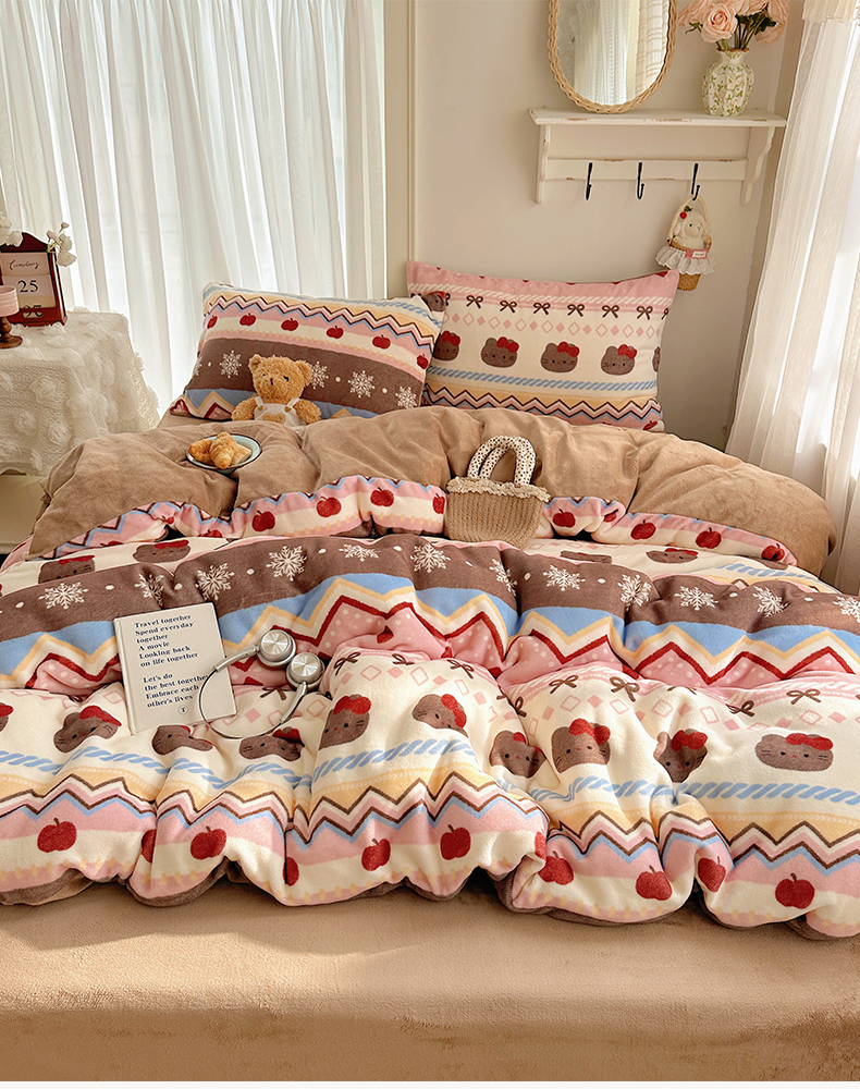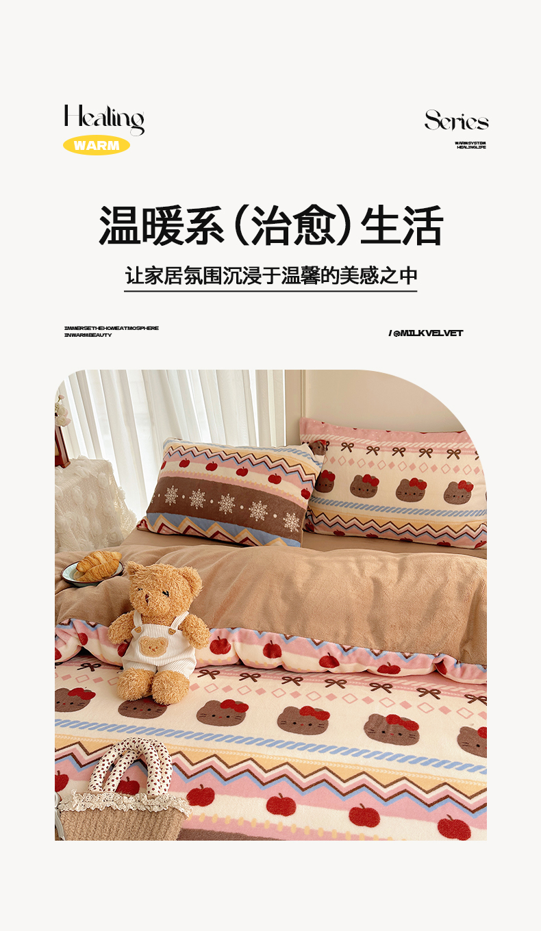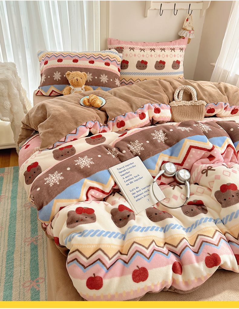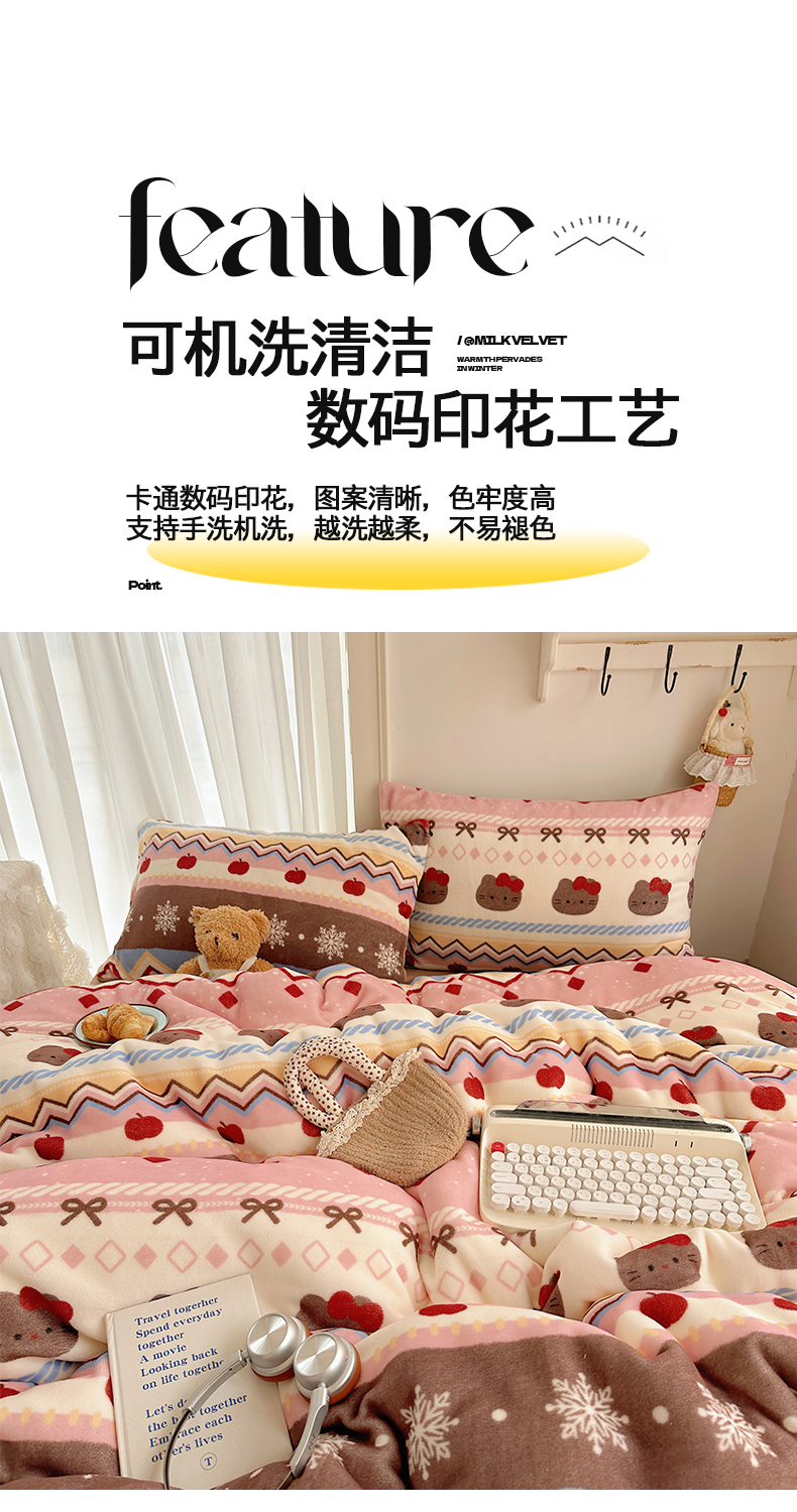 当前位置: 91家纺网 > 商品网购 > 床品套件 > 四件套 > 牛奶绒四件套 > 桃子家居 2025新款A类ins圣诞新年费尔岛秋冬限定款加厚牛奶绒系列四件套 绒-冬日小喵粉