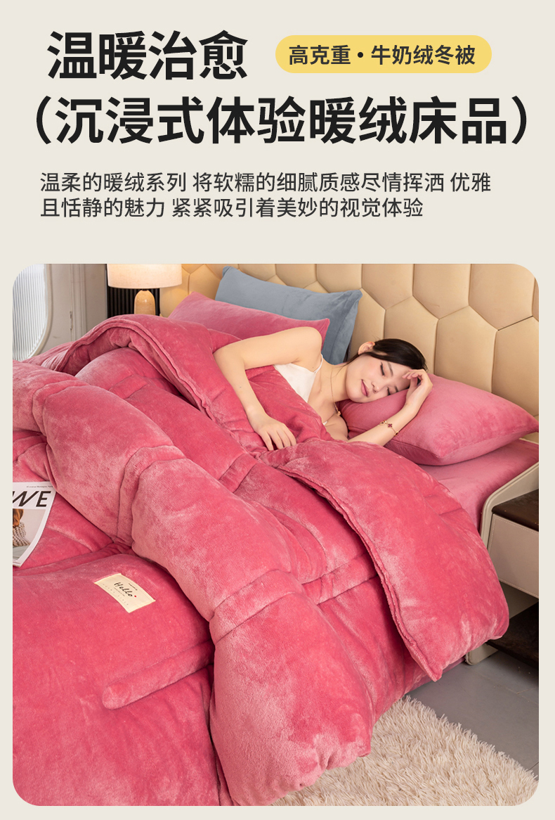 • 91家纺网 家纺一手货源 找家纺 恋之巢家纺 2025新款双面牛奶绒模特冬被被子被芯 豆沙红