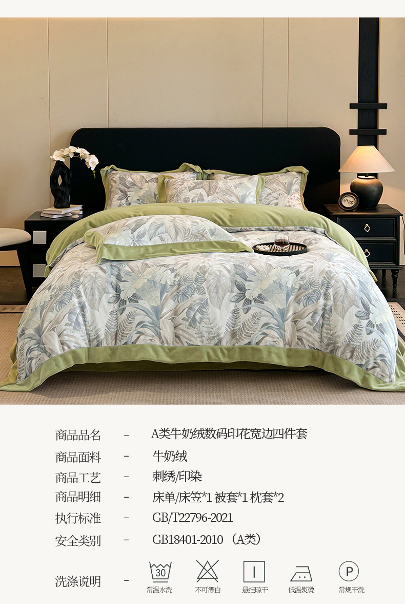 当前位置: 91家纺网 > 商品网购 > 床品套件 > 四件套 > 牛奶绒四件套 > 眷恋家纺 2025新款加厚牛奶绒法式数码印花宽边四件套 倾墨