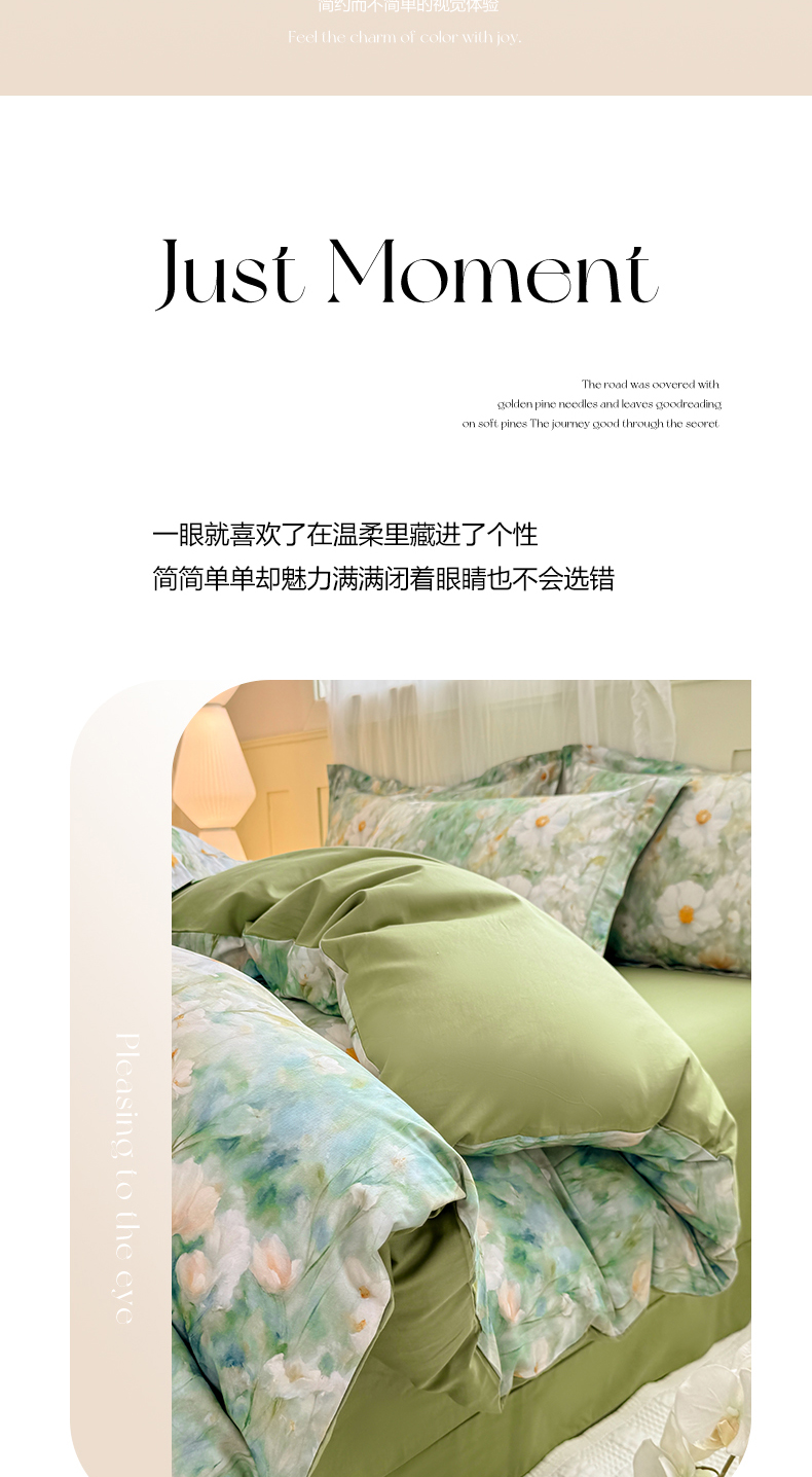 红日子纺织品 2025新款全棉纯棉数码印花四件套 花暖容颜-绿