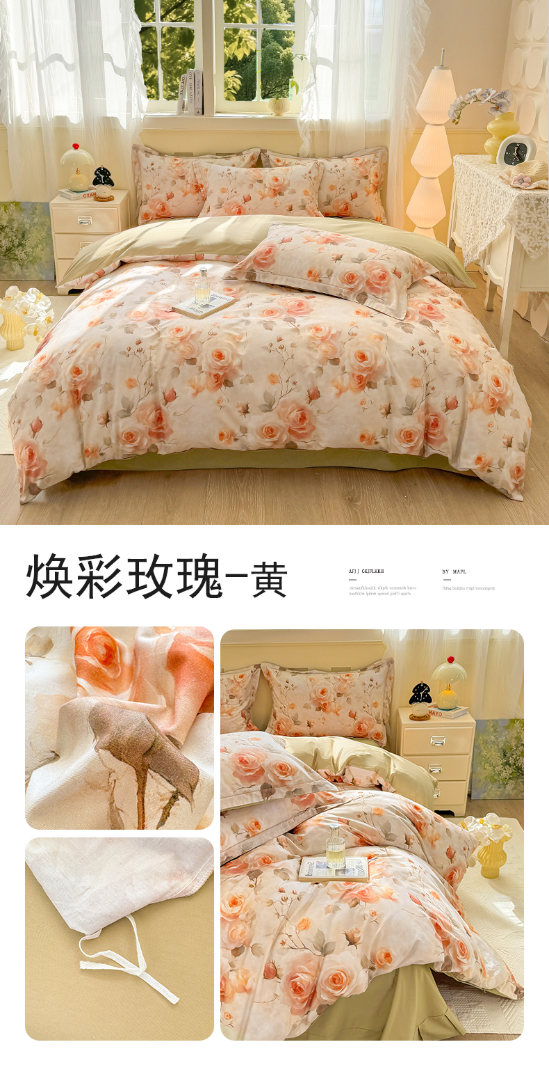 (总)红日子纺织品 2025新款全棉纯棉数码印花四件套,花暖容颜-绿,波斯记忆-蓝,茶山露水-桔,淡雅清风-蓝,芳若-绿,花情共舞-米,焕彩玫瑰-黄,美尼尔-粉,莫兰迪-紫,莫妮花园-粉,浓情蜜意-粉,翩翩花语-绿,秋日盛情-黄,日落花雨-灰,如若梦境-绿,诗丹娜-深蓝,邂逅柔情-蓝,秀雅佳人-灰
