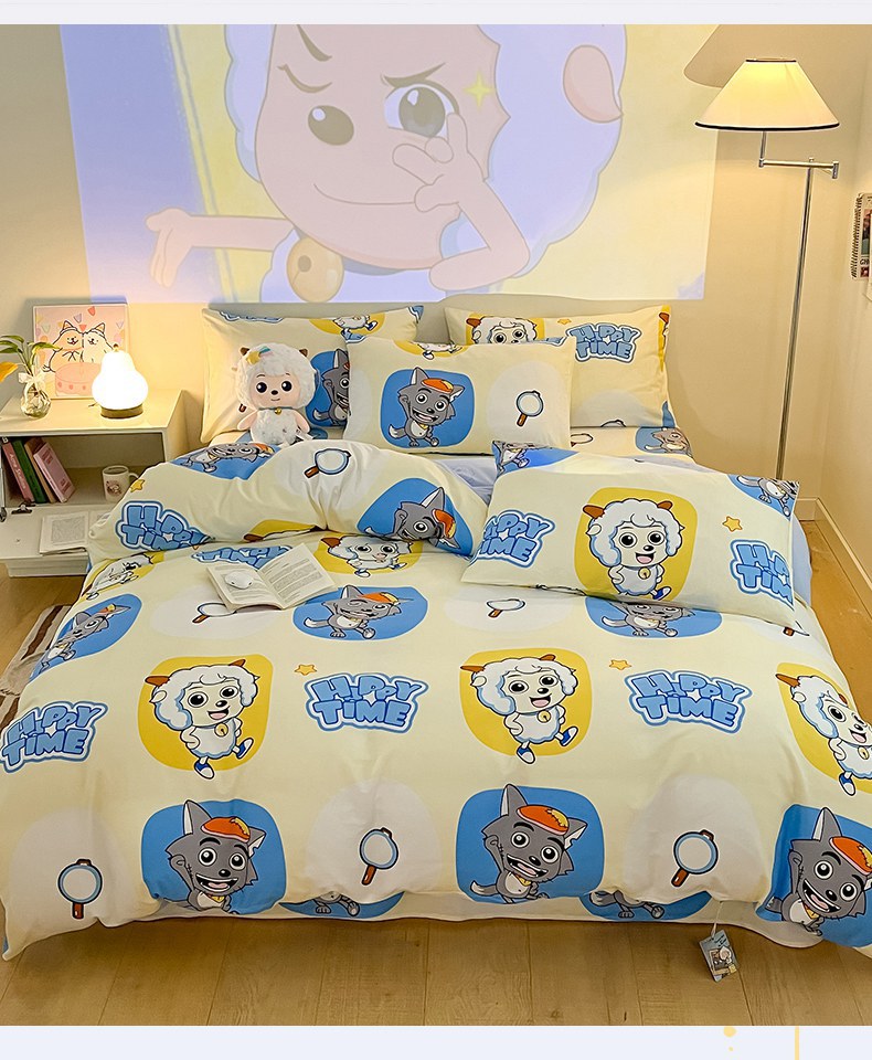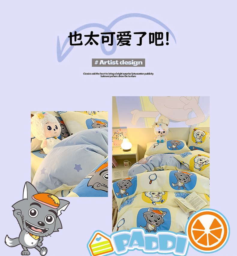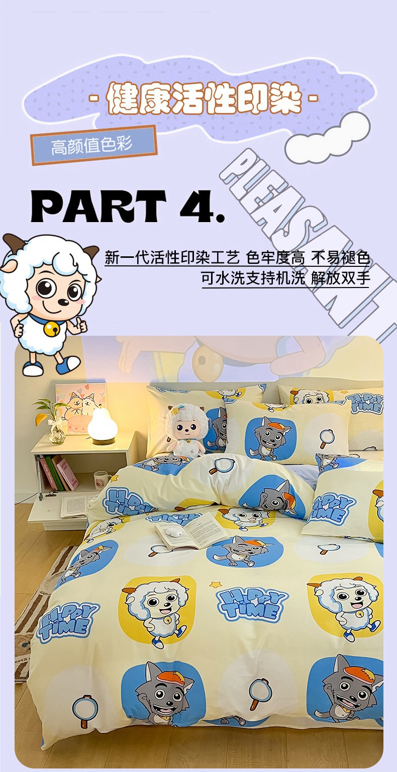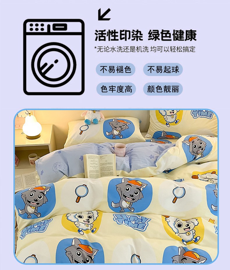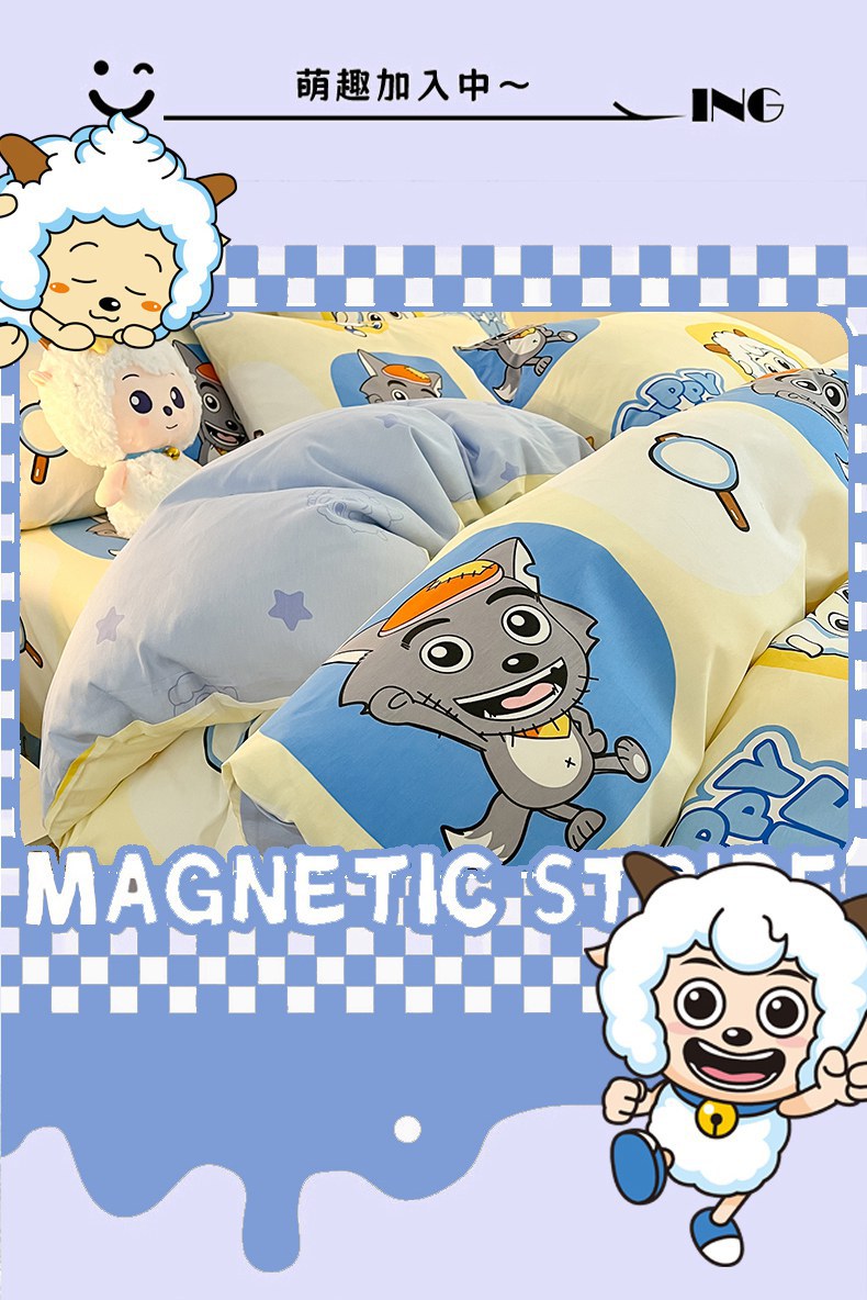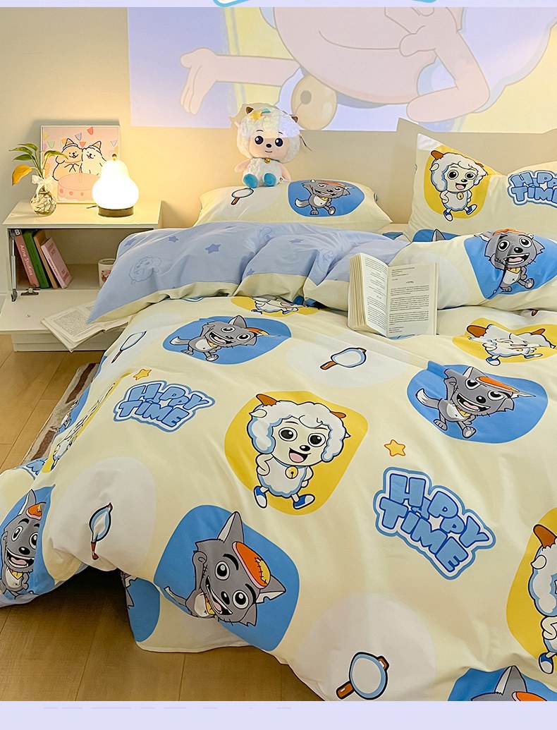 当前位置: 91家纺网 > 商品网购 > 床品套件 > 四件套 > 全棉普通四件套 > 金鑫汇家纺 2025新款喜羊羊与灰太狼全棉四件套 狼羊童话梦
