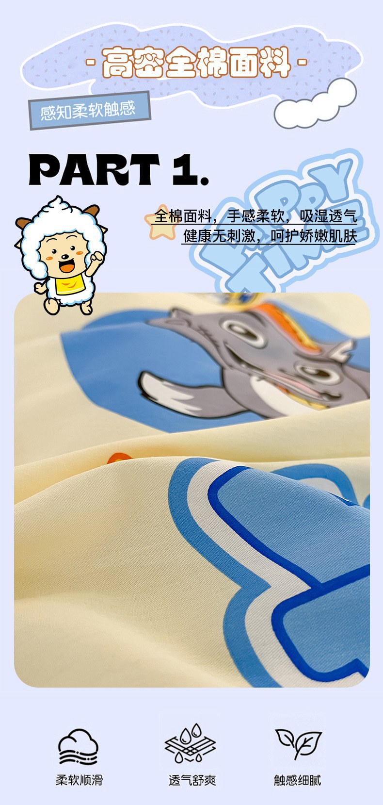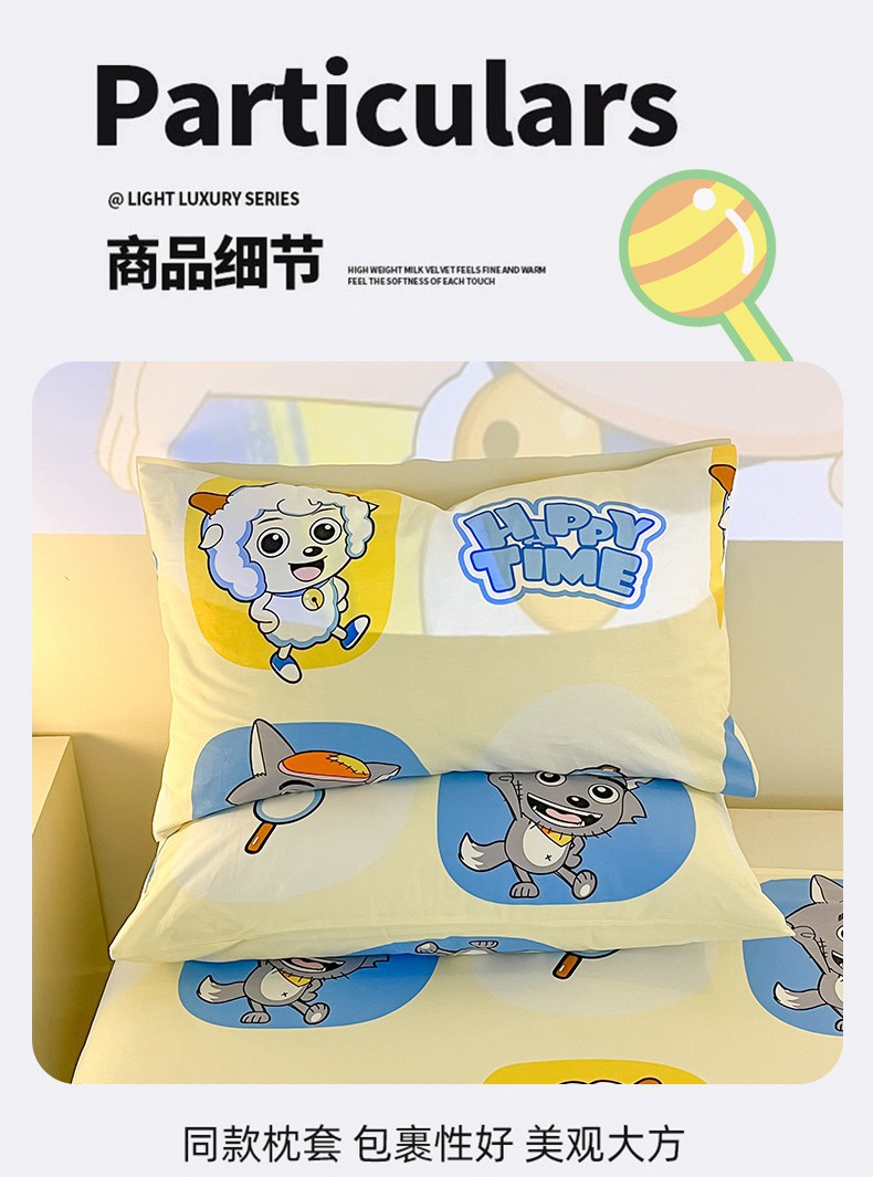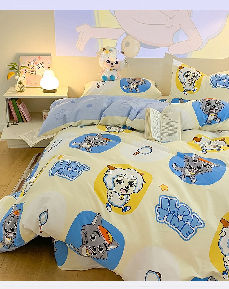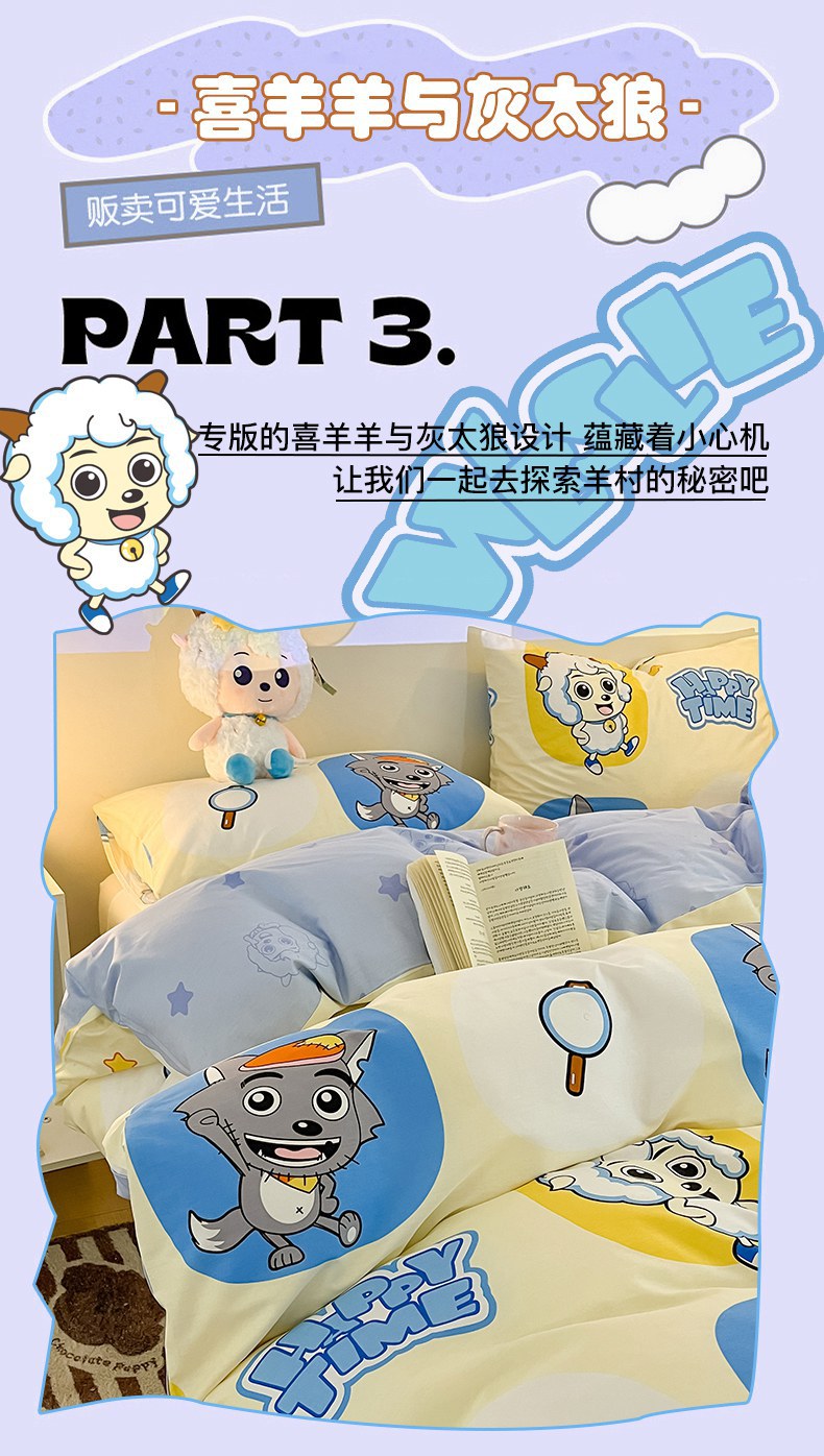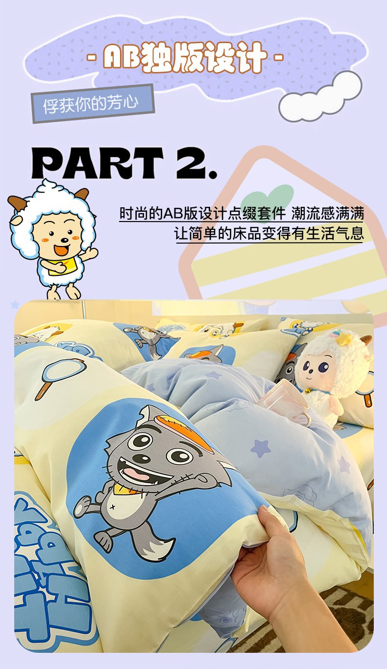 当前位置: 91家纺网 > 商品网购 > 床品套件 > 四件套 > 全棉普通四件套 > 金鑫汇家纺 2025新款喜羊羊与灰太狼全棉四件套 狼羊童话梦