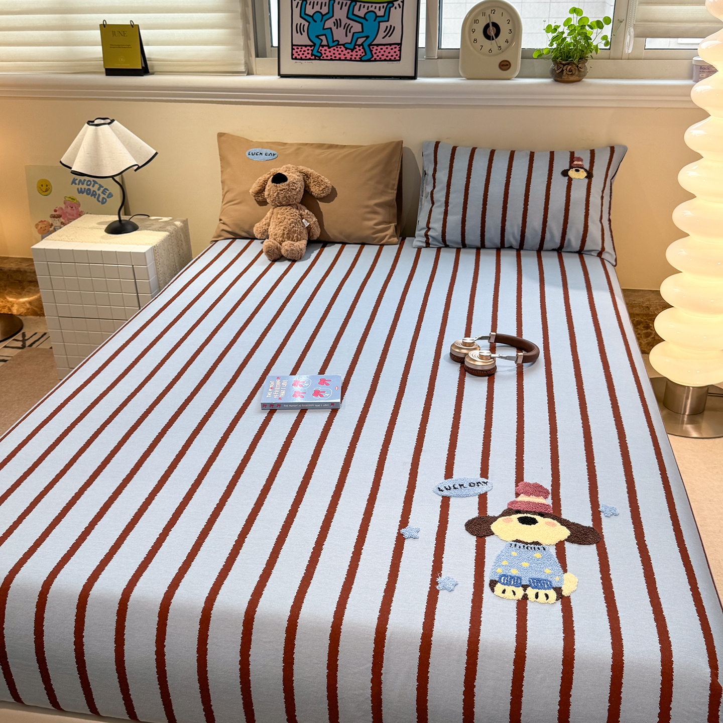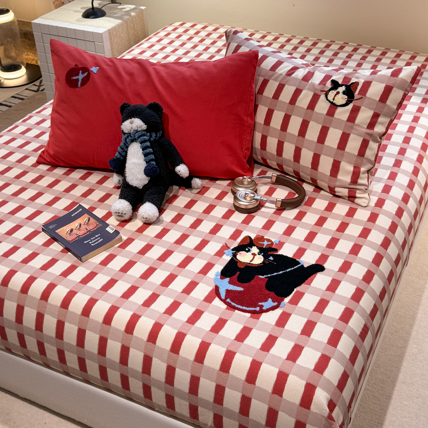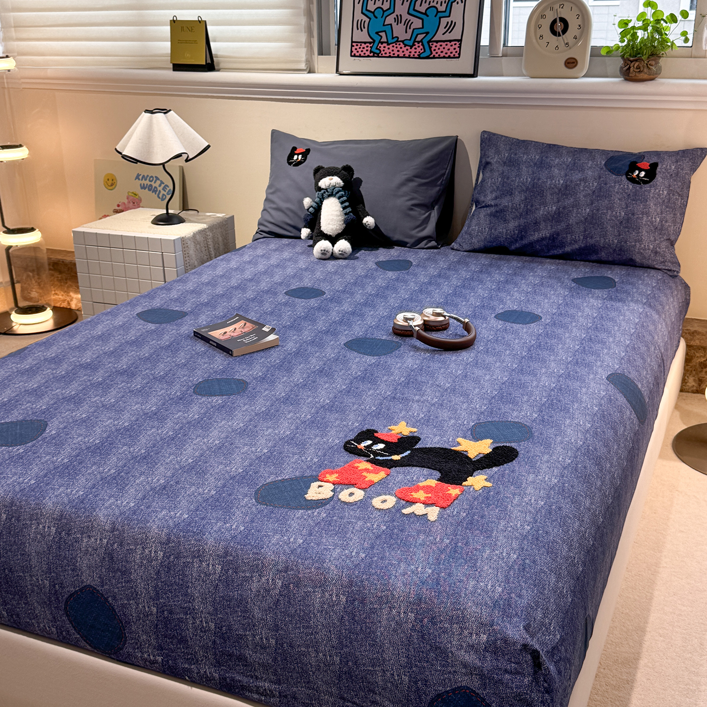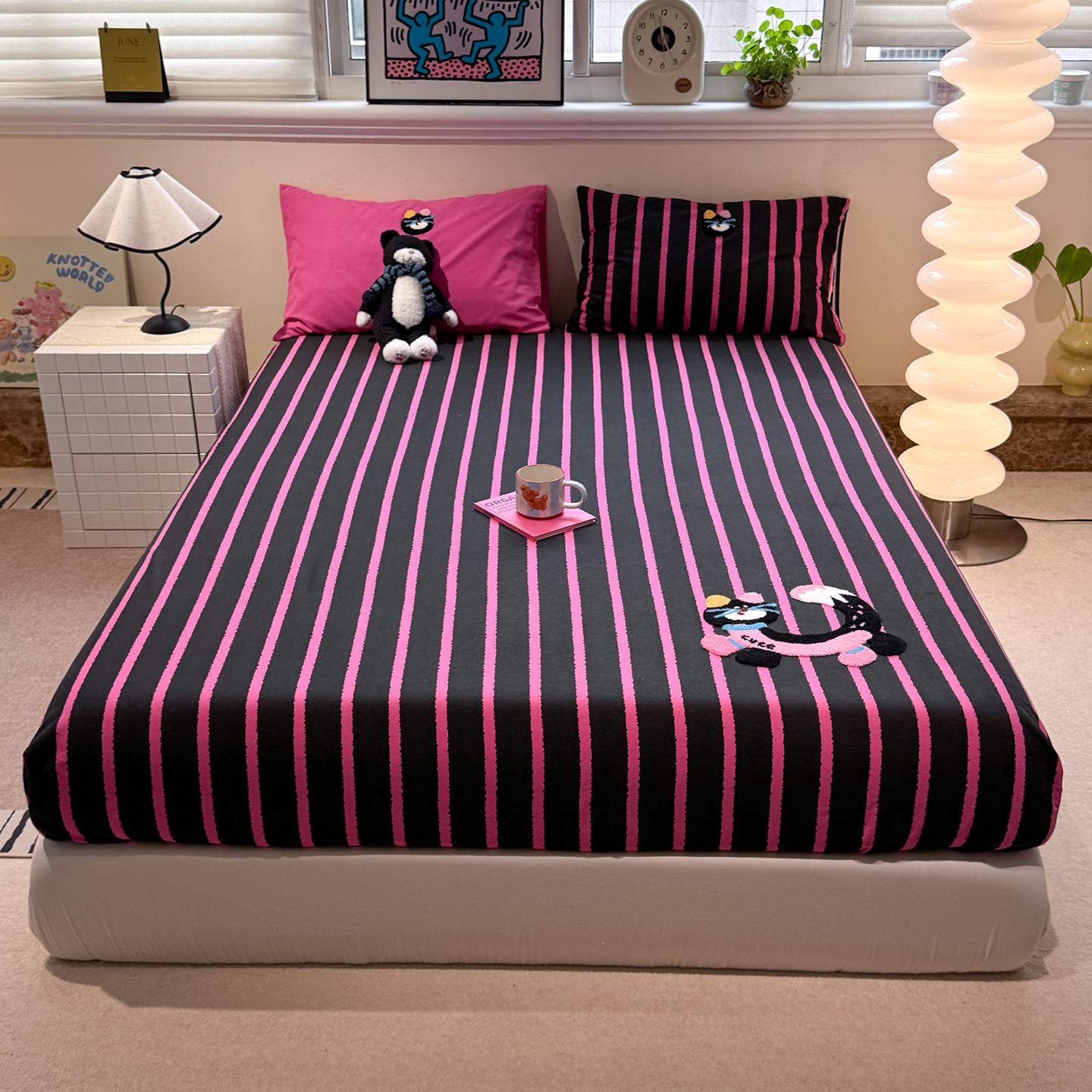 珺柔家纺 2025新款磨毛毛巾绣床笠 萌神小喵