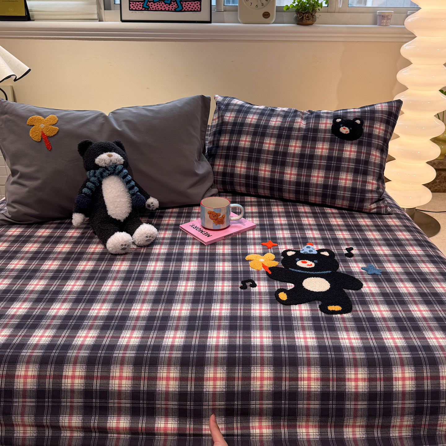(总)珺柔家纺 2025新款全棉磨毛绣花四件套,风车小熊,海盐雪纳瑞,黑白熊猫,咖啡店小狗,腊肠三小只,萌神小喵,纽扣小熊,苹果小熊-咖,苹果小熊-蓝,夏日时光,小恶魔