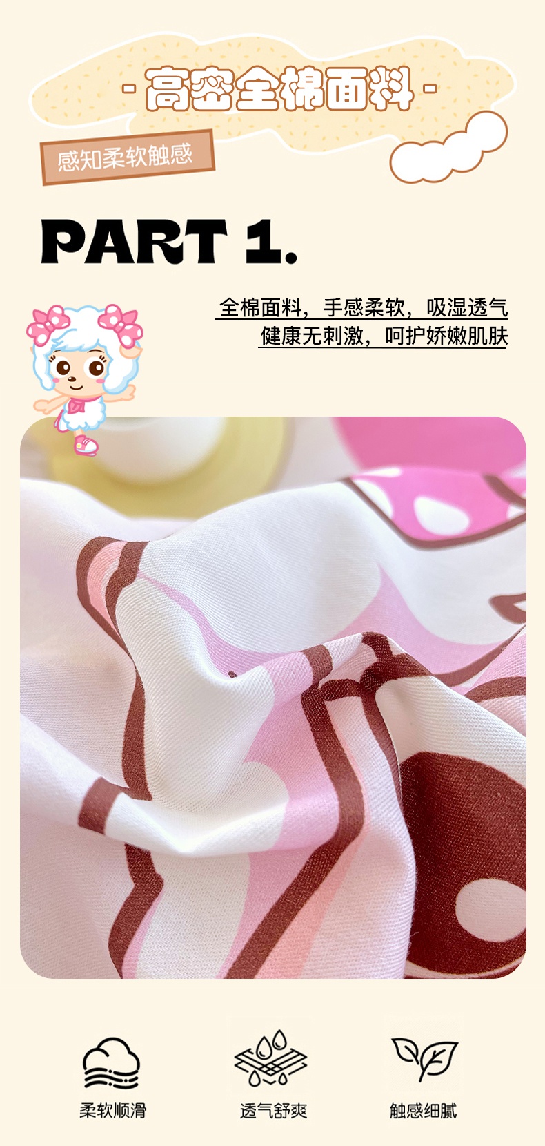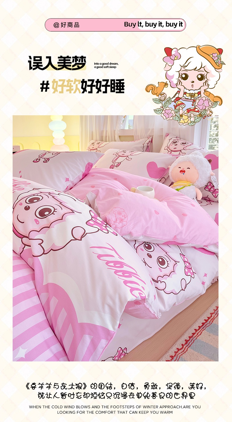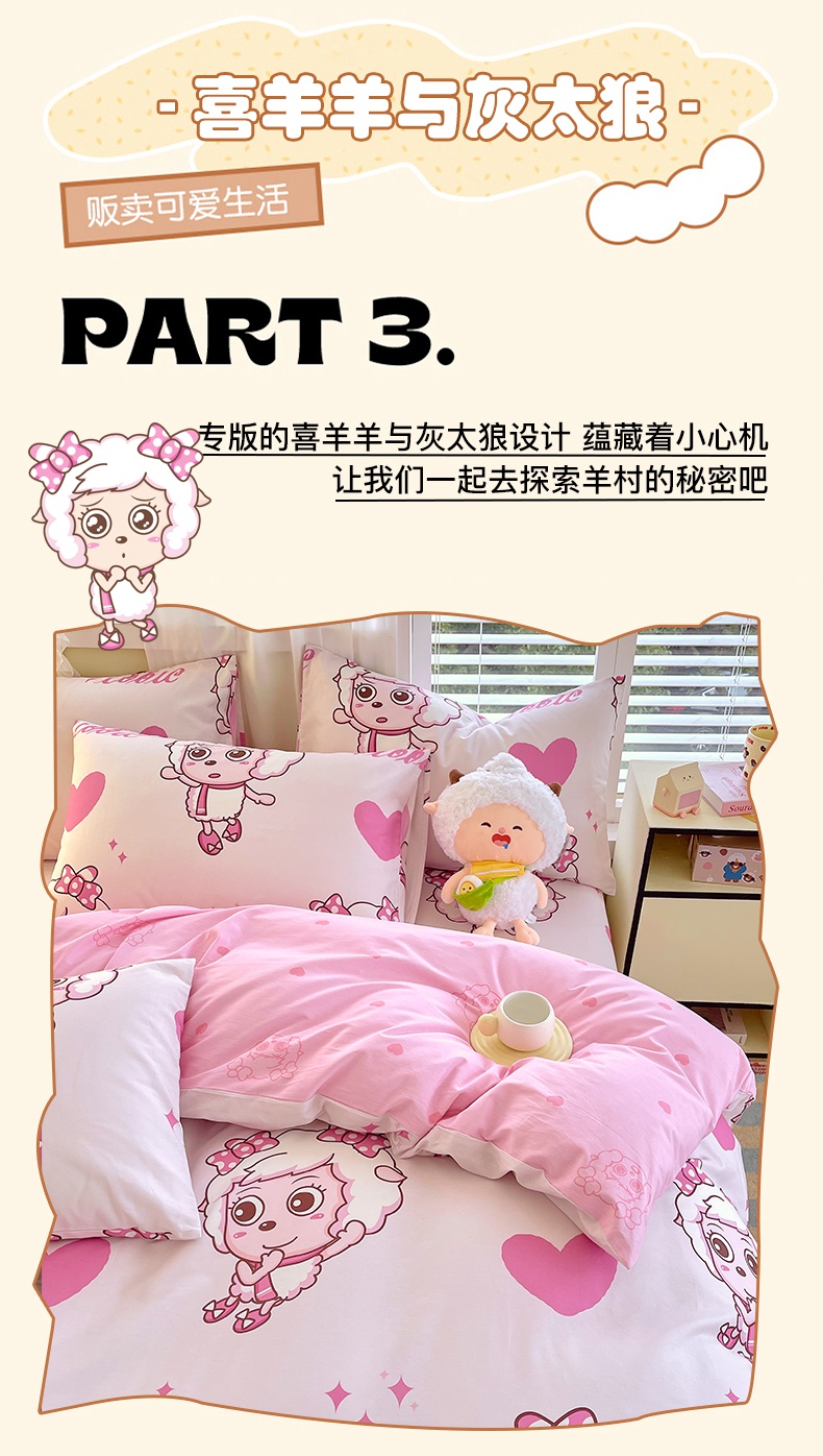 商品名称:金鑫汇家纺 2025新款喜羊羊与灰太狼全棉单品被套 时尚美羊羊