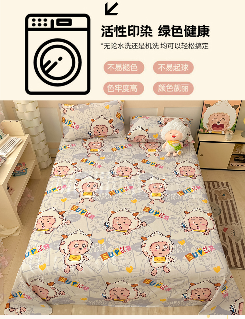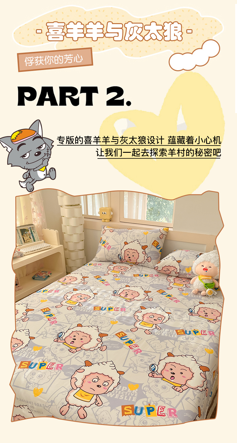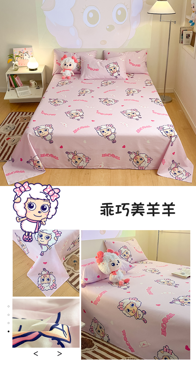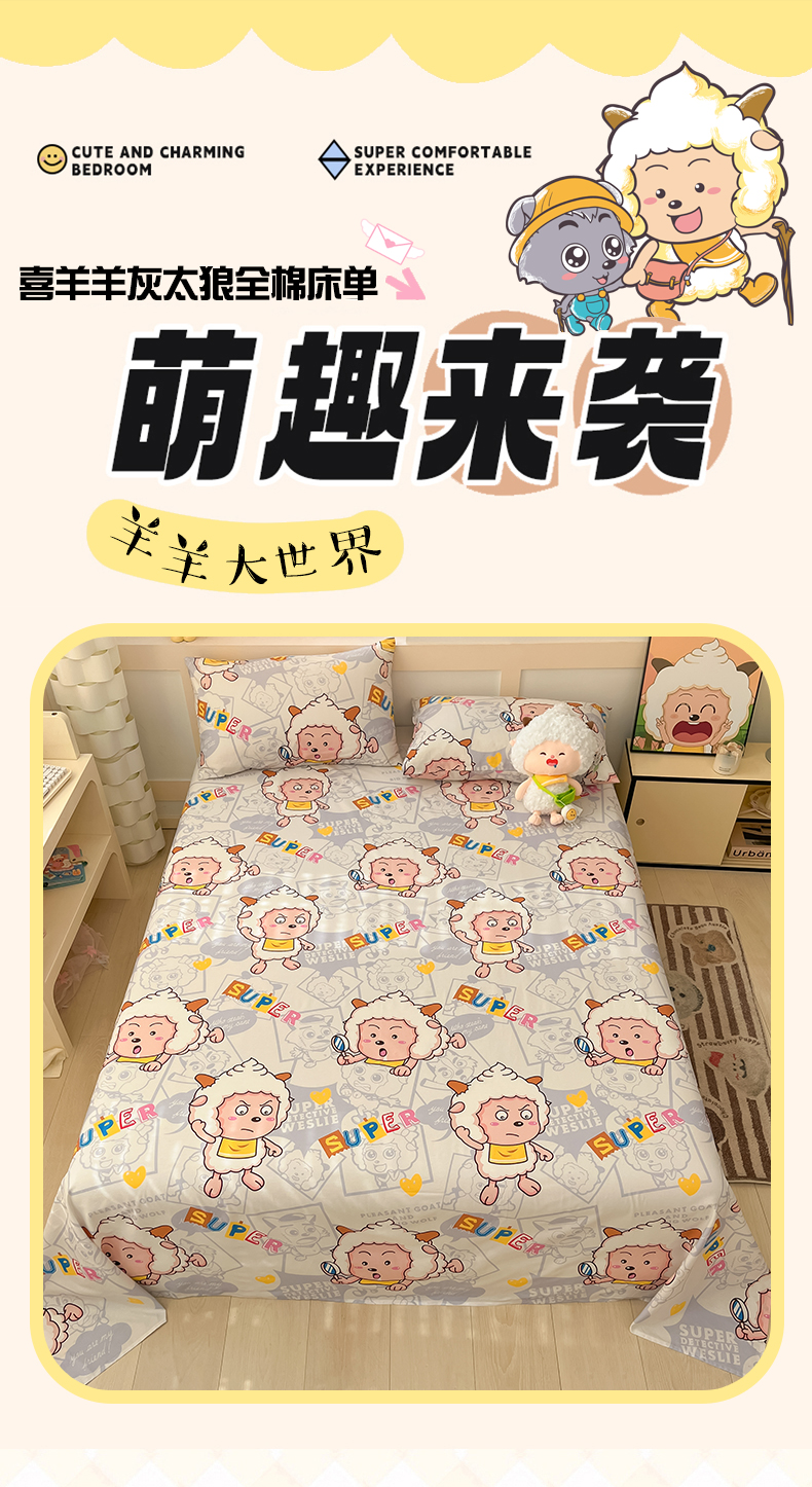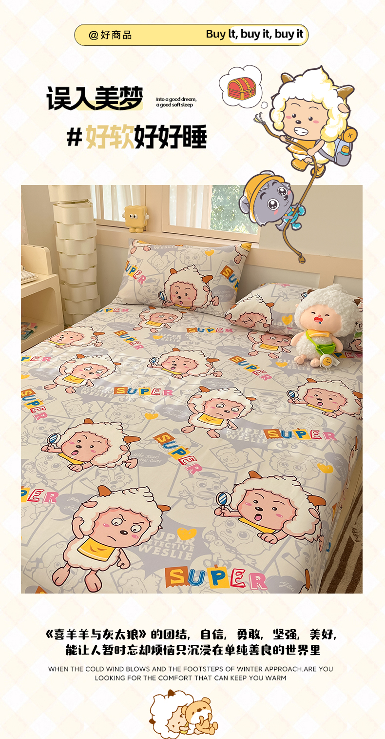 商品名称:金鑫汇家纺 2025新款喜羊羊与灰太狼全棉单品床单 探索懒羊羊