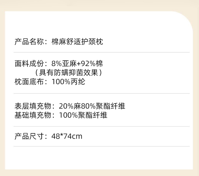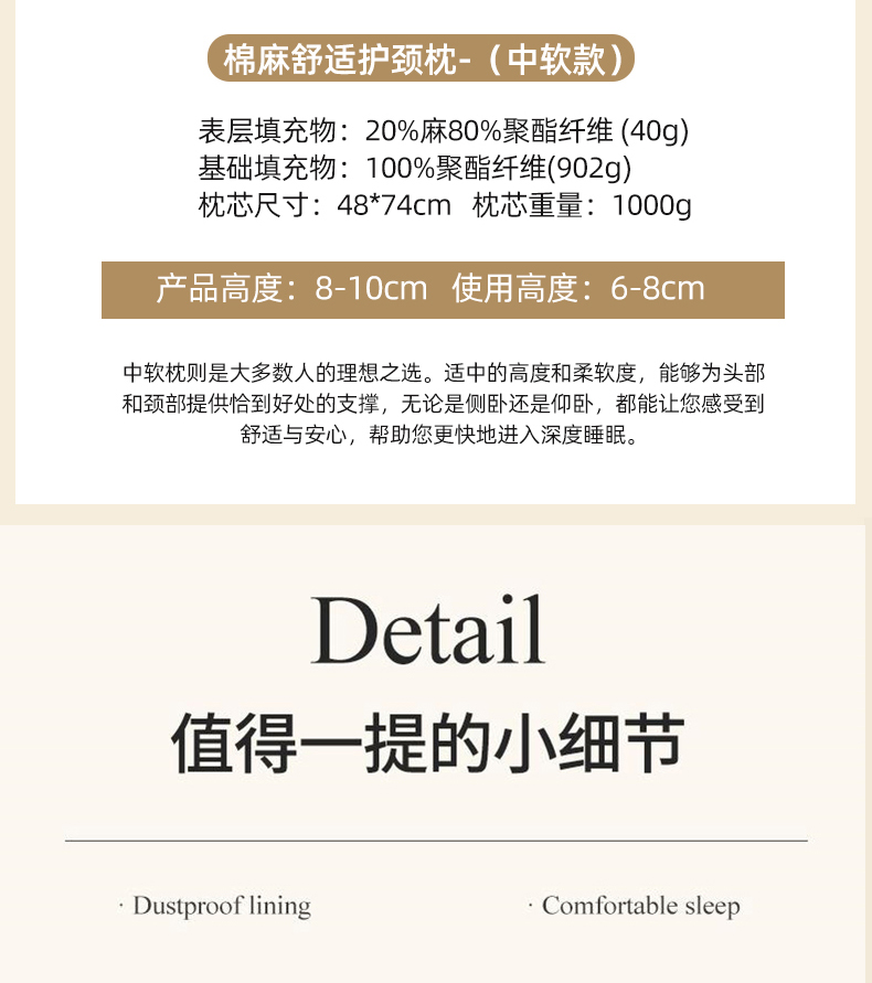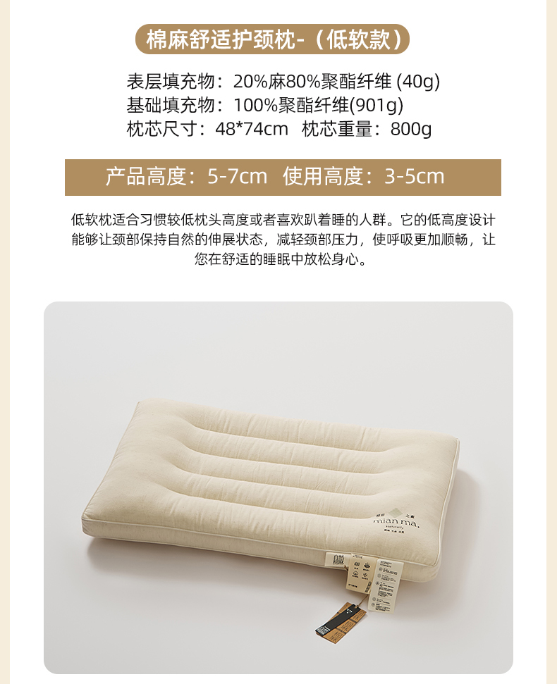 当前位置: 91家纺网 > 商品网购 > 枕头/枕芯/保健枕/颈椎枕 > 枕头枕芯 > 境月枕芯坊 2025新款棉麻舒适护颈枕枕头枕芯 棉麻舒适护颈枕-中软款