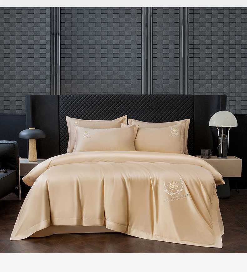 商品名称:卡诗兰 2025新款A类50S双股新疆长绒棉贡缎面料刺绣四件套-高端礼盒装 皮粉-皇冠