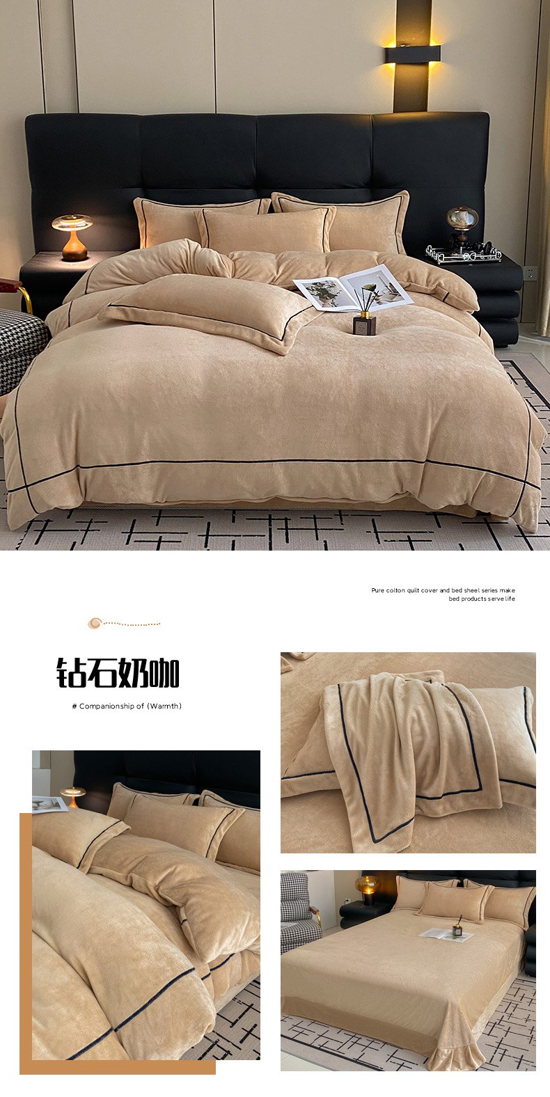 商品名称:卡诗兰2025款高克重加厚牛奶绒十字绣四件套 宾利兰
