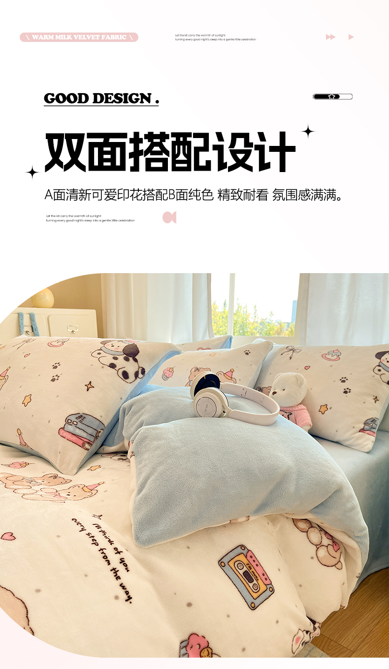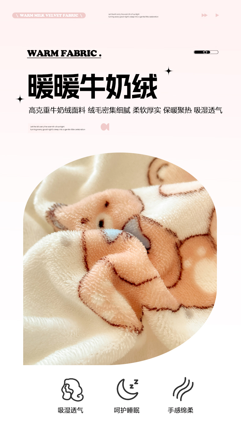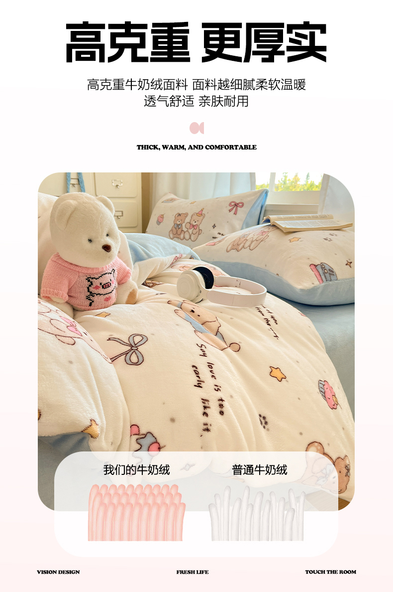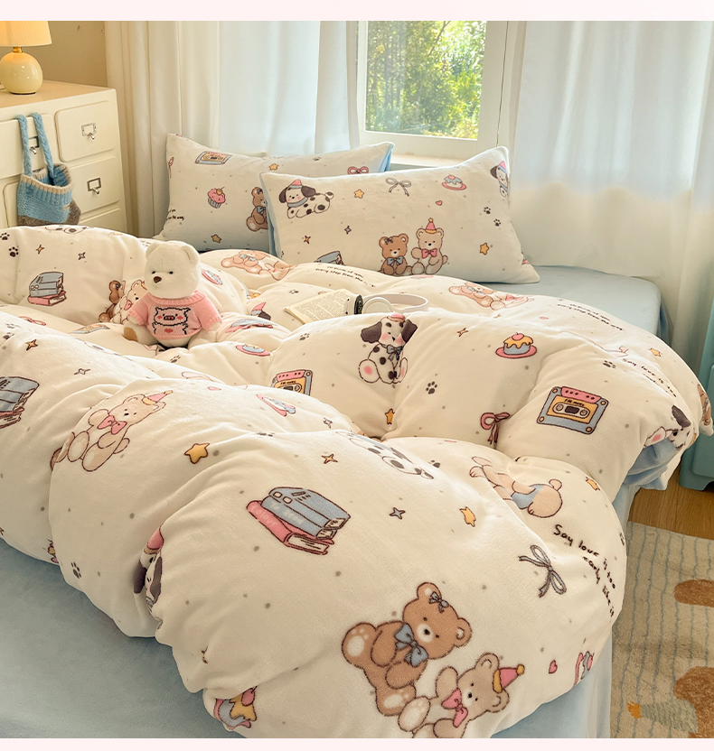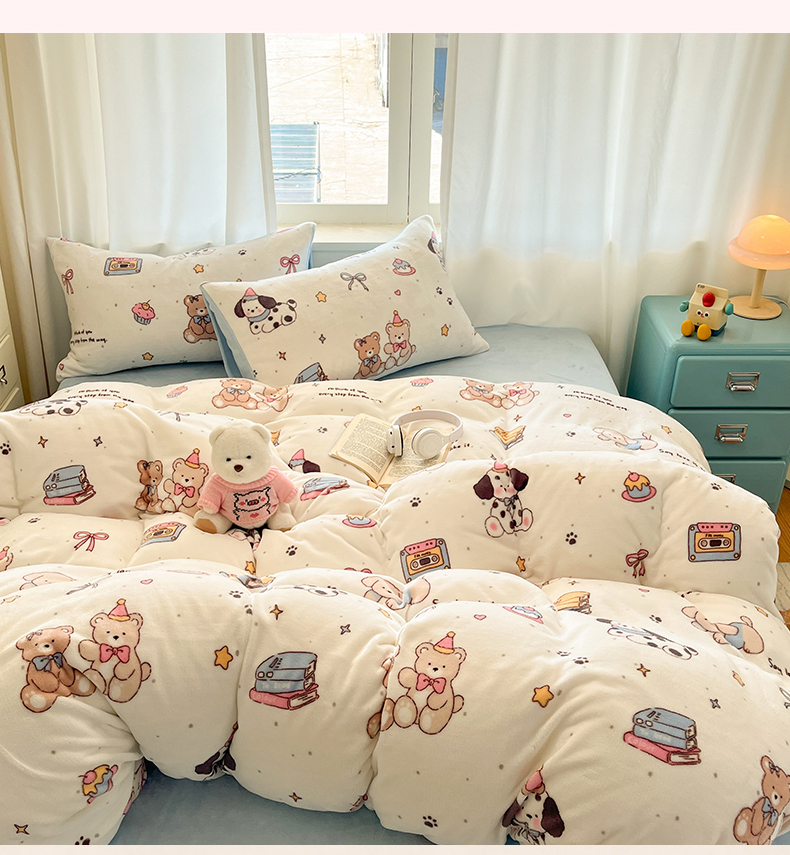 吉象家纺 2025新款高克重牛奶绒印花被套 音乐熊仔