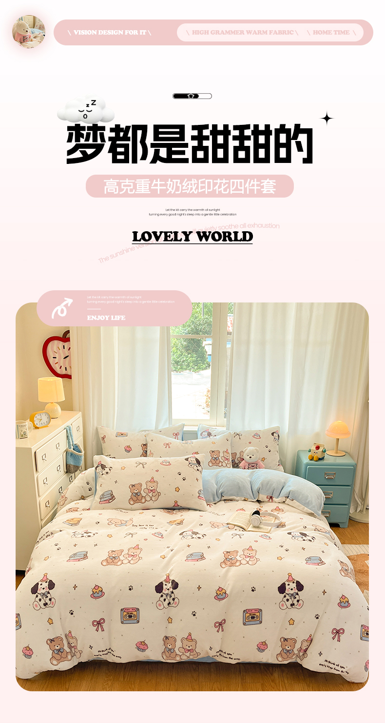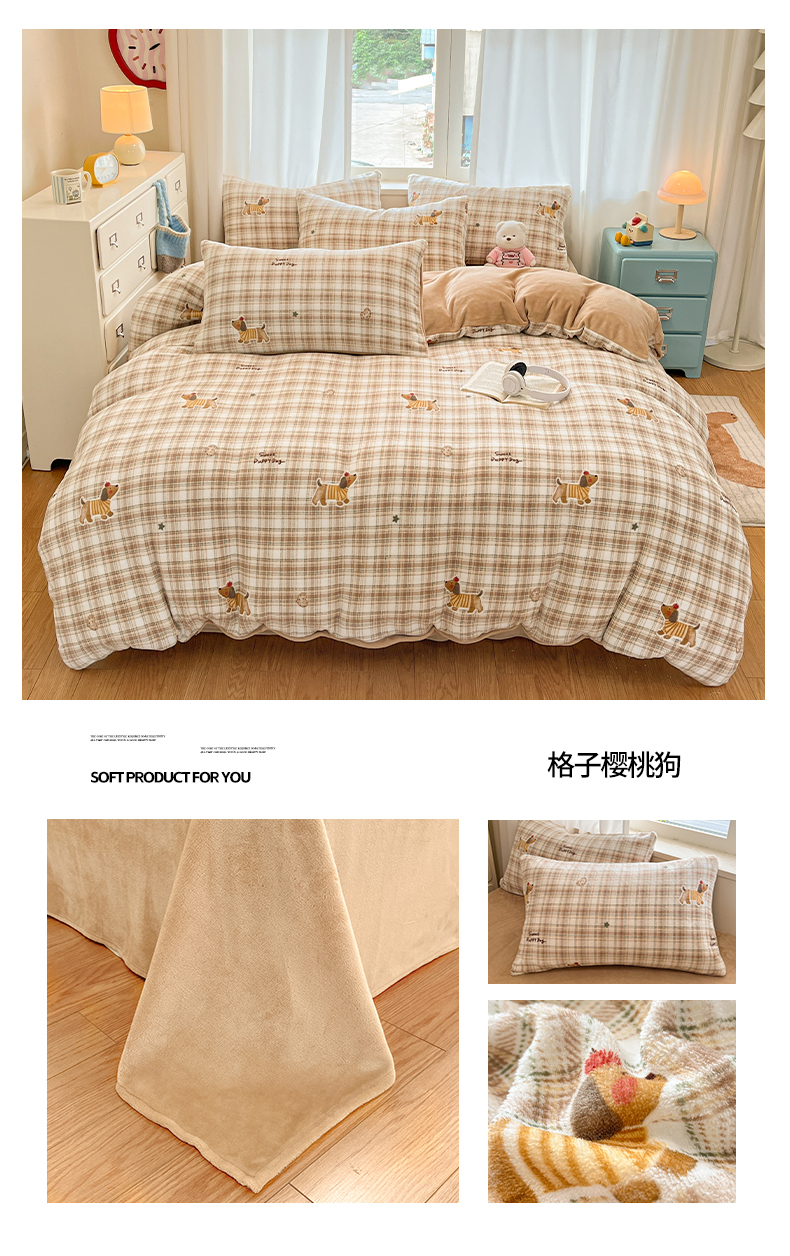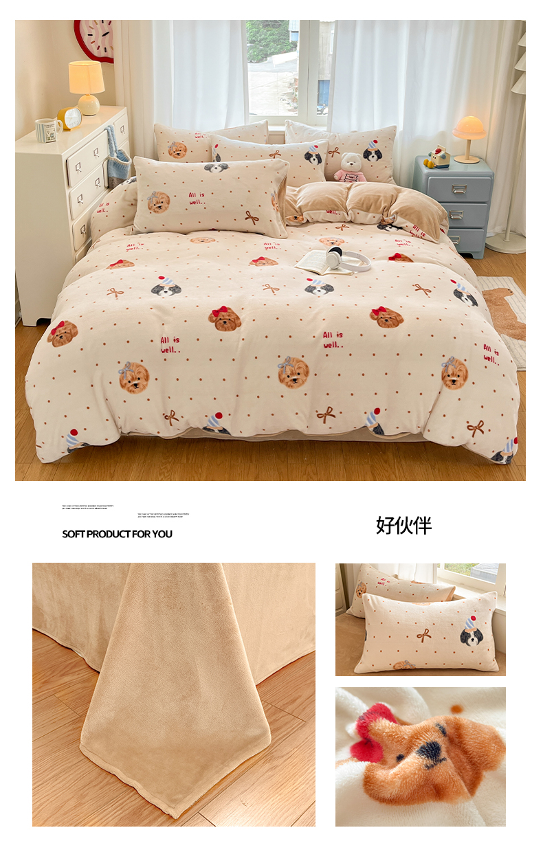 (总)吉象家纺 2025新款全棉牛奶绒印花四件套,棉绒-格子熊,棉绒-狗狗派对,棉绒-花丛小狗,棉绒-镜子海洋,棉绒-蓝色泡芙狗,棉绒-蜜罐猫猫,棉绒-蘑菇小兔,棉绒-奶油甜心熊,棉绒-苹果狗,棉绒-俏皮狗狗,棉绒-碎花狗狗,棉绒-碎花小兔,棉绒-糖纸童年,棉绒-甜心喵喵,棉绒-童趣萌新,棉绒-洋气泰迪,棉绒-爪爪会客厅