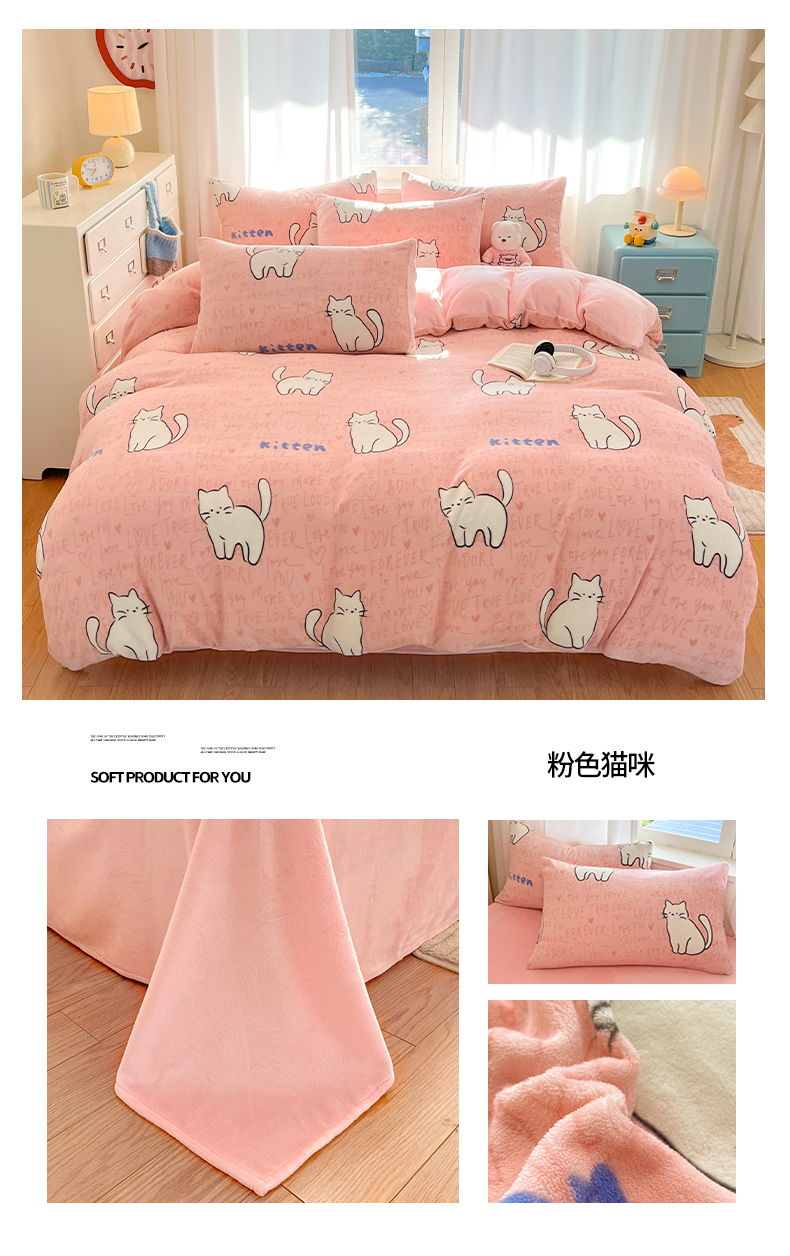 (总)吉象家纺 2025新款高克重牛奶绒印花被套,布偶猫,宠物派,点点围脖狗,粉色猫咪,格子樱桃狗,狗狗乐园,好伙伴,萝莉猫咪,奶萌修狗,小可爱,星星宠物,音乐熊仔