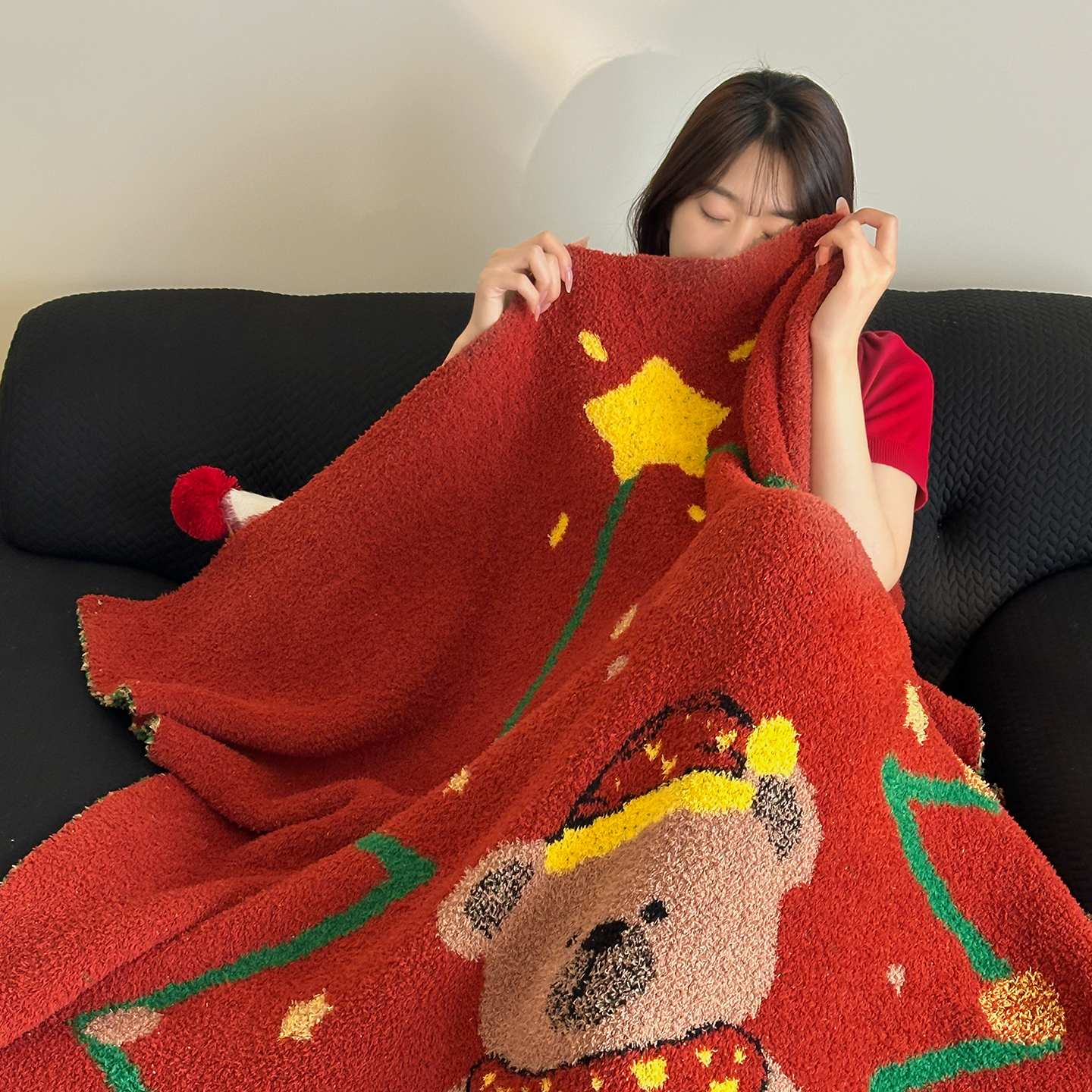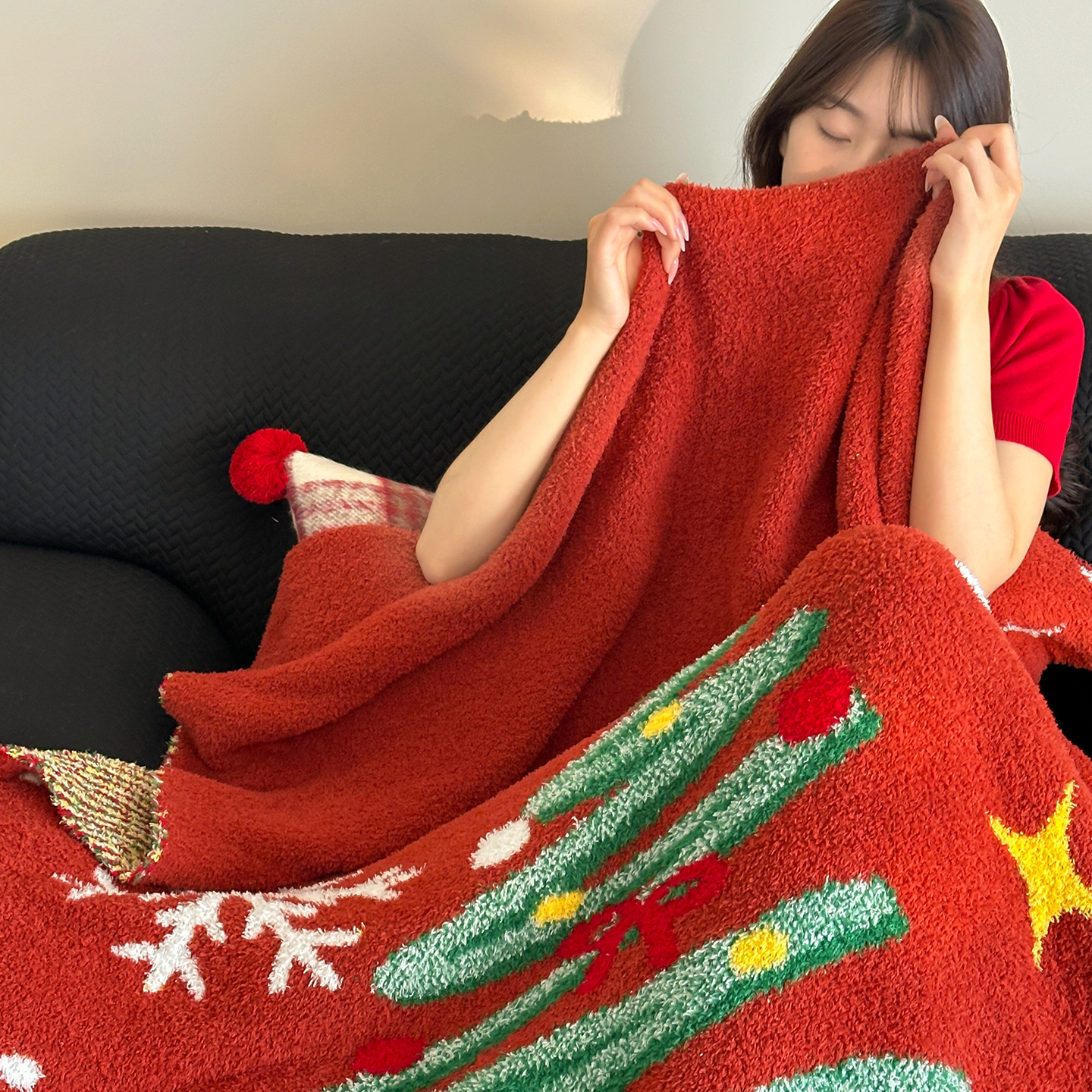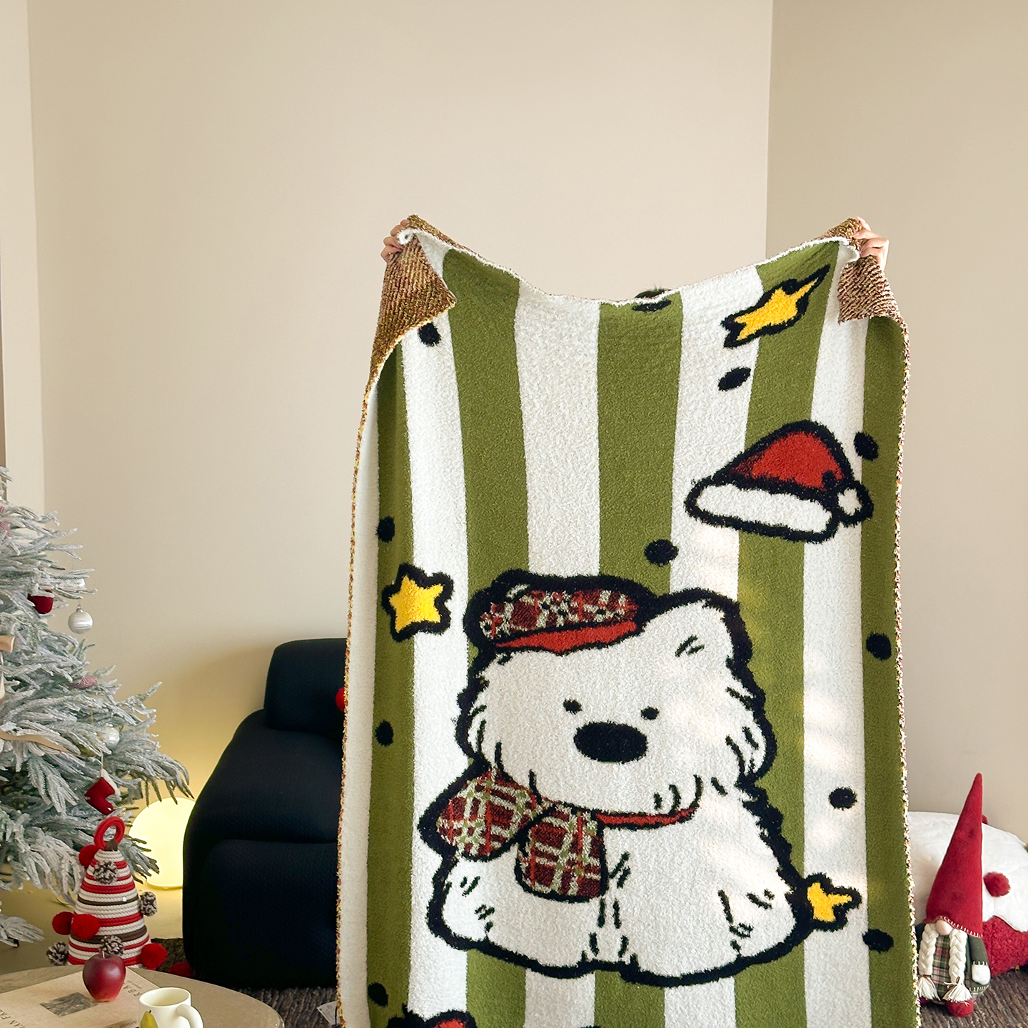 觅糖家纺 2025新款圣诞限定暖绒盖毯 暖冬小狗