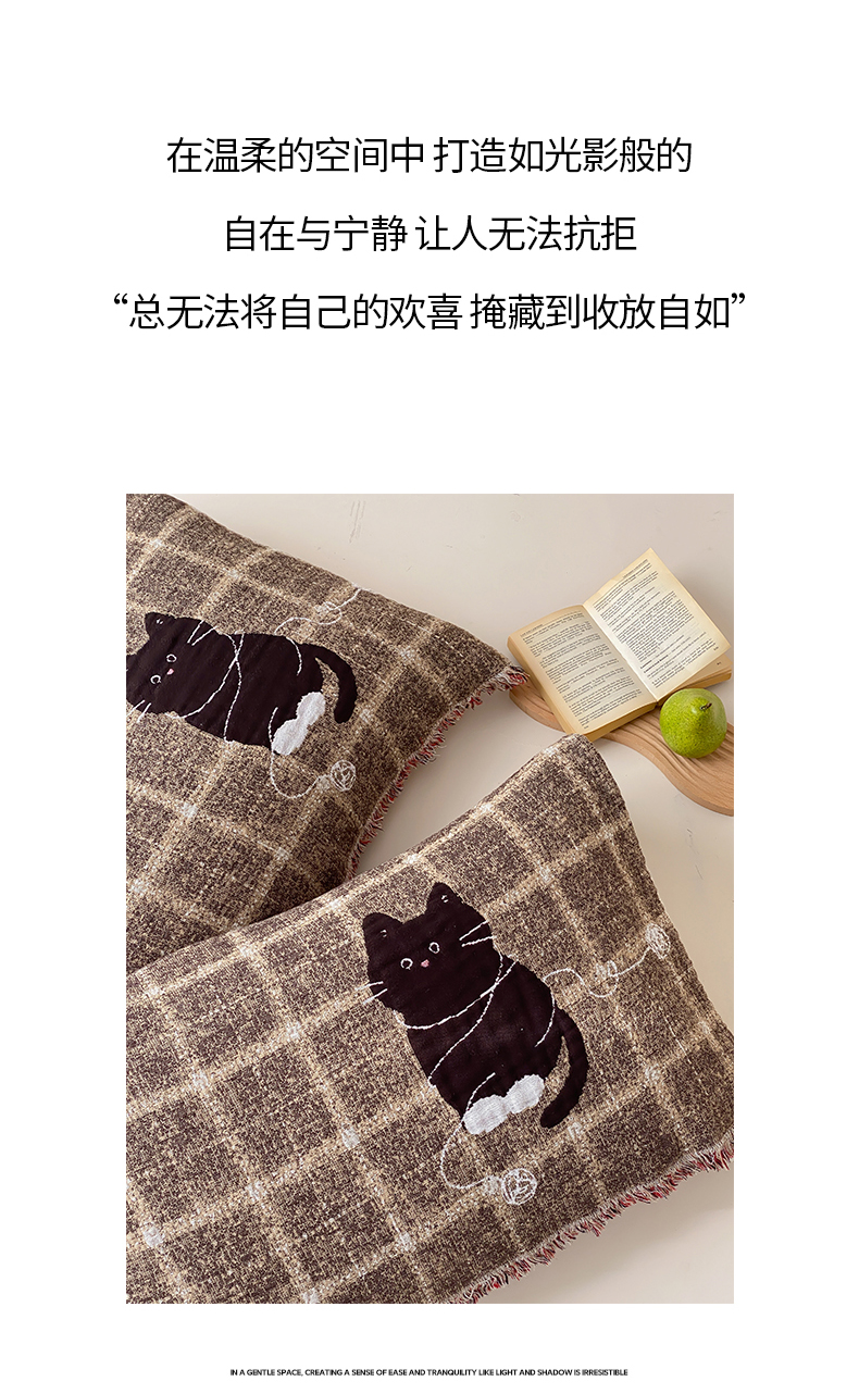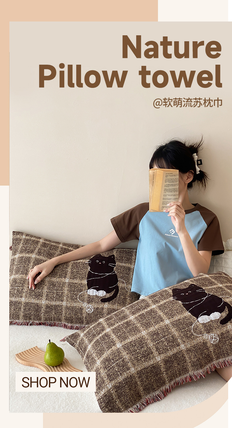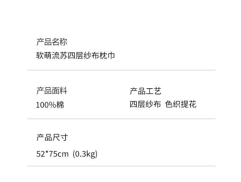 商品名称:麻依 2025新款全棉四层纱布软萌流苏枕巾 线团小咪