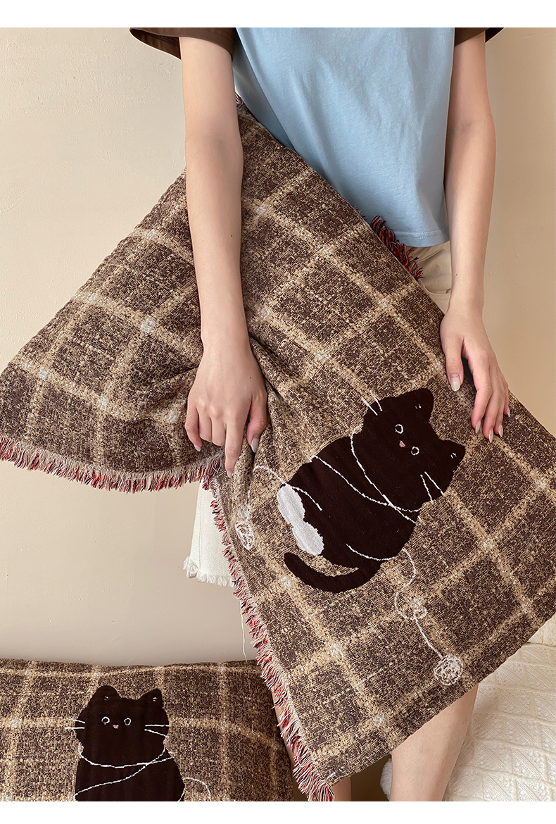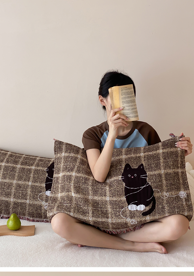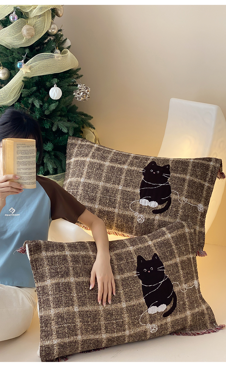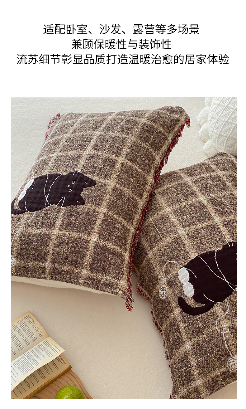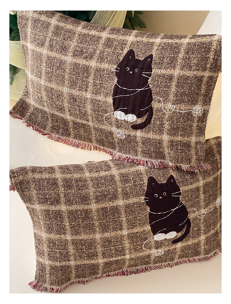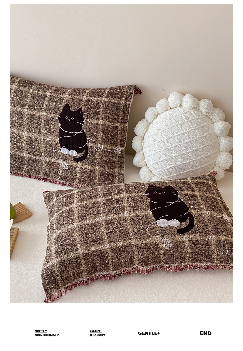 麻依 2025新款全棉四层纱布软萌流苏枕巾 线团小咪