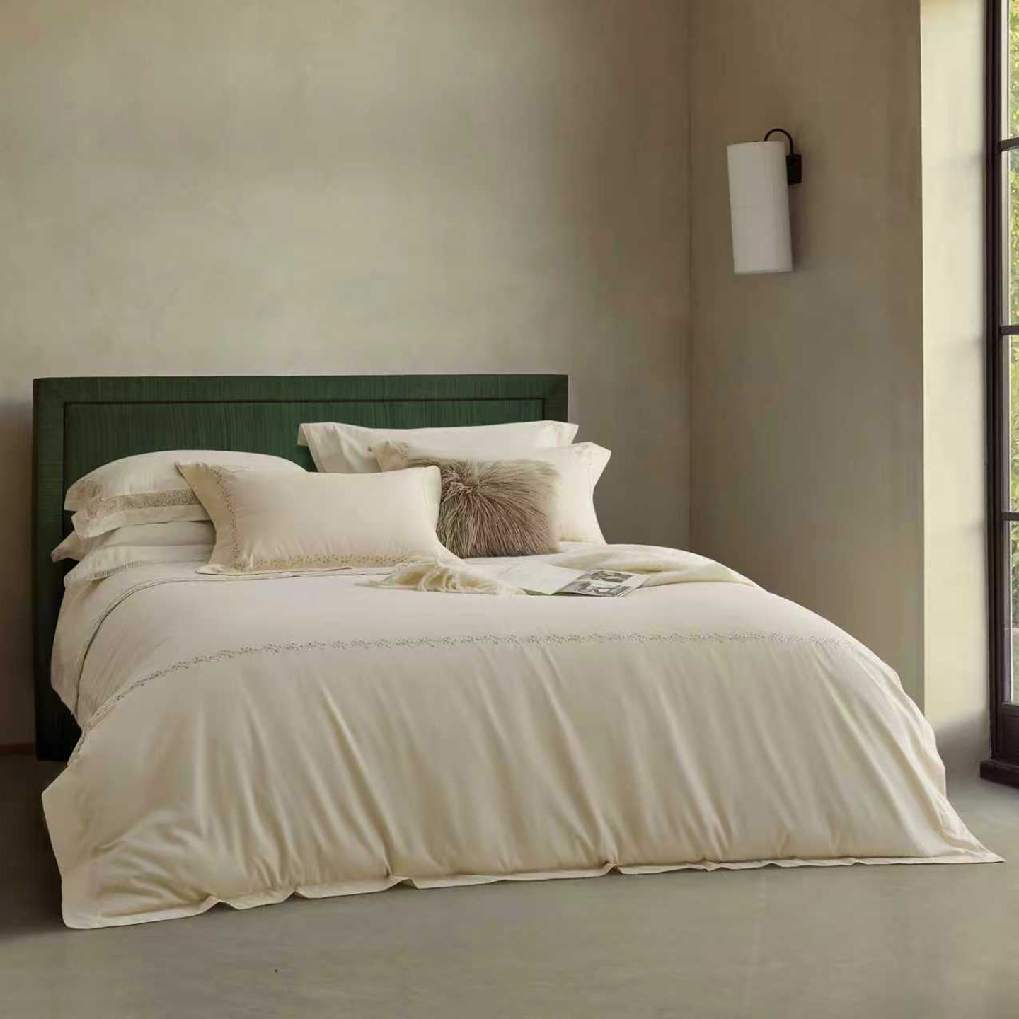 (总)嘉恋 2023新款100支全棉提花镂空四件套送包装,薄暮金,羽叶白,斑马纹,罗勒灰,西柚粉