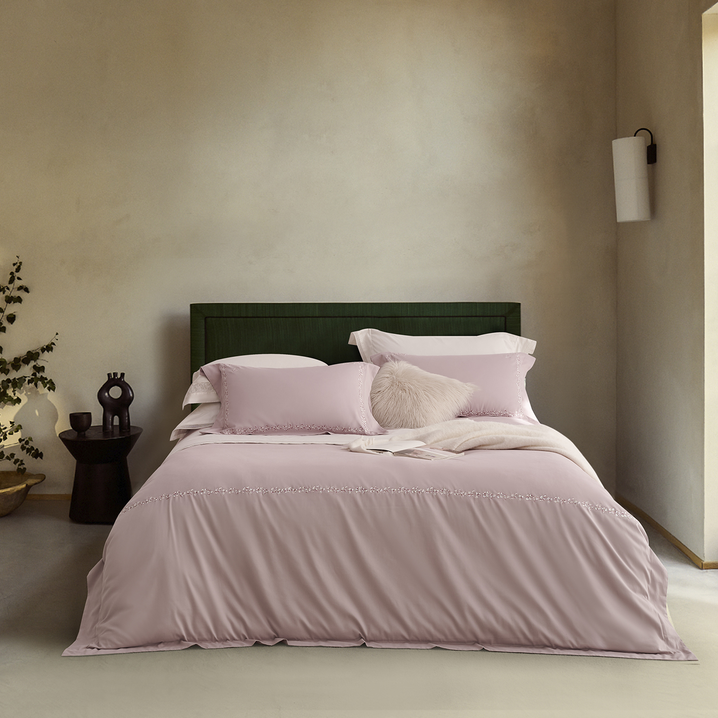 嘉恋家纺 2025新款东帝兴全棉磨毛绣花四件套-情书系列 情书-豆沙粉