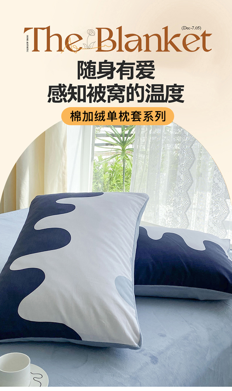 金鑫汇家纺 2025新款全棉豆豆绒系列单枕套-棉加绒系列 棉加绒-奶油蓝