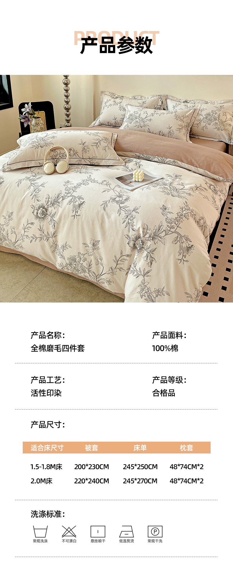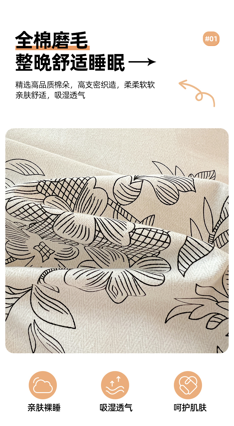 商品名称:亿梵家居 2026新款全棉纯棉磨毛四件套 古韵佳人