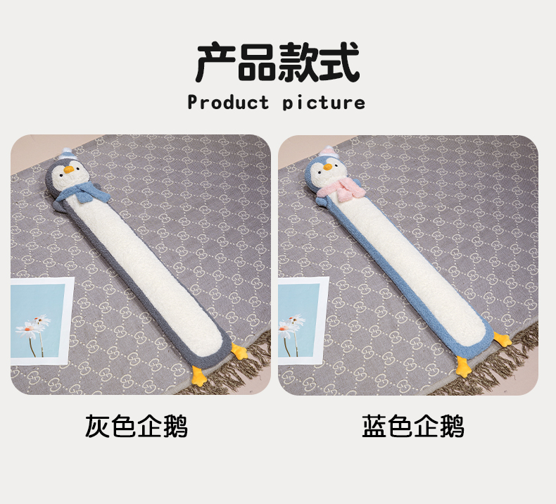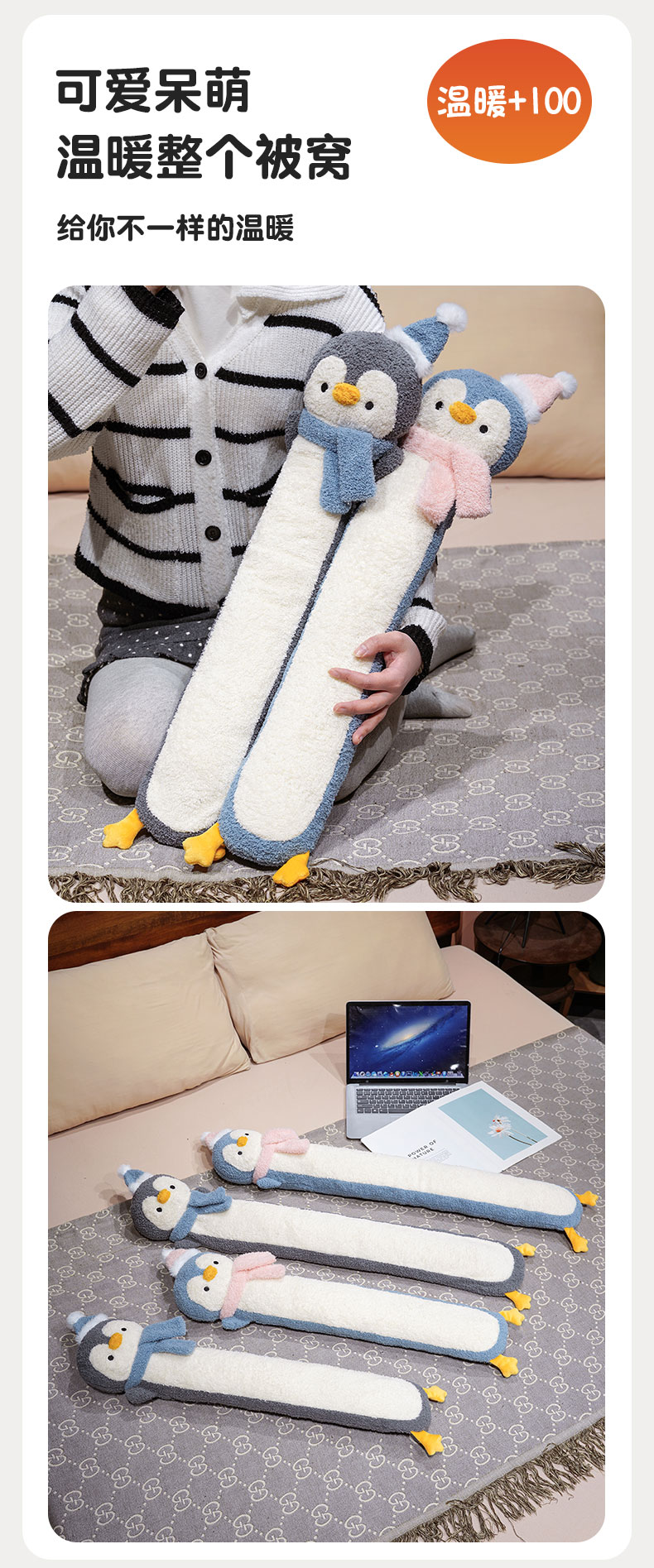 商品名称:仟亿莱 2025新款108企鹅云朵绒注水长条热水袋抱枕 蓝色企鹅