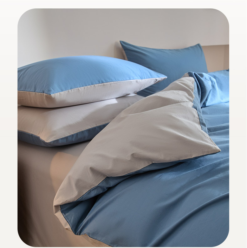 当前位置: 91家纺网 > 商品网购 > 床品套件 > 四件套 > 全棉普通四件套 > 泽西家纺+V17798841158发大图 2026新品A类全棉13376简约纯色双拼全棉四件套单被套枕套三件套 浅蓝+深蓝